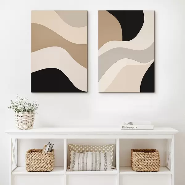 Pictură pe pânză Valuri abstracte în tonuri de bej și negru Nr m00460