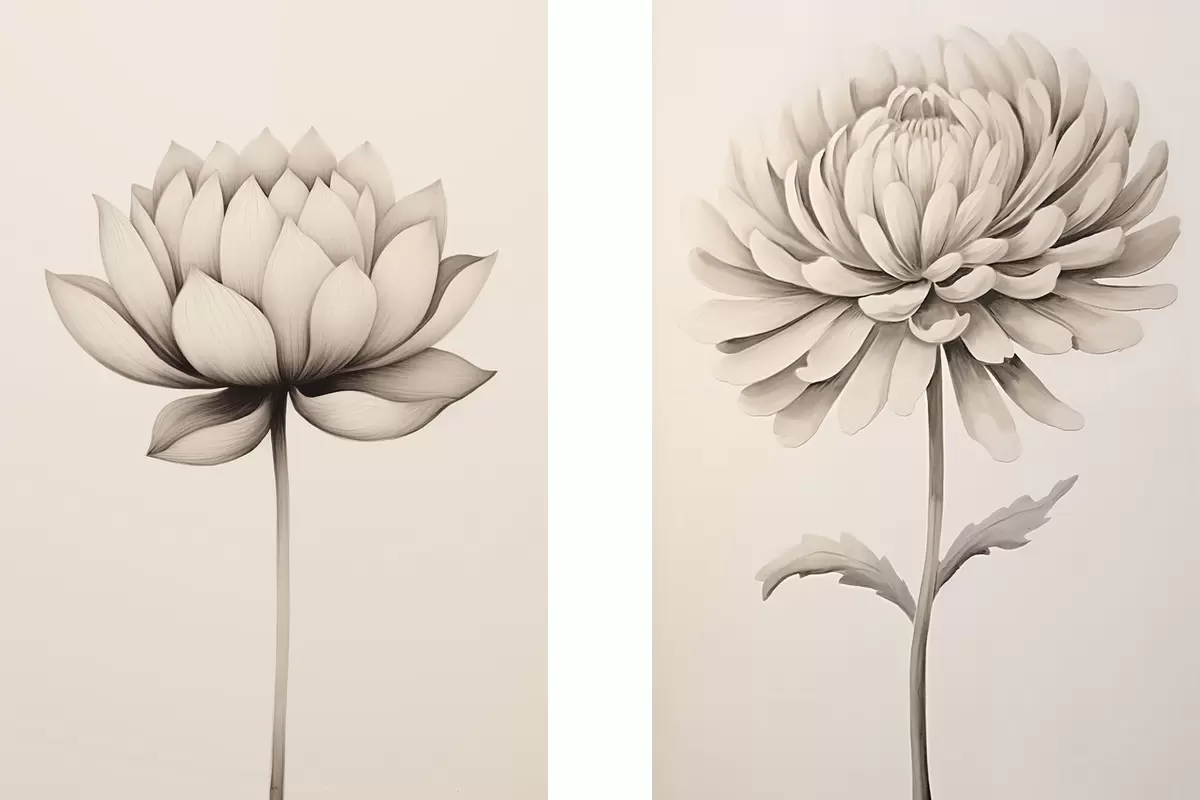Pictură pe pânză Lotus și crizantemă Nr m00475