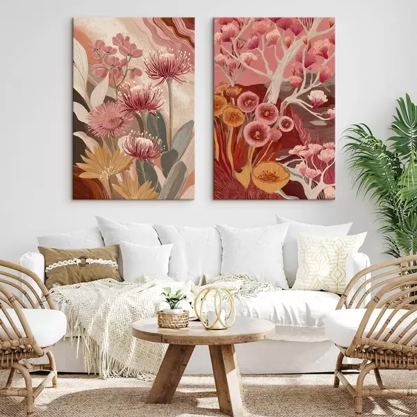 Pictură pe pânză Boho stil flori, desen detaliat, culori burgundy Nr m00476