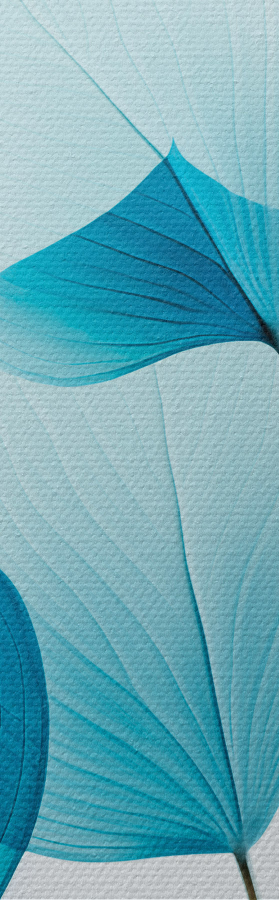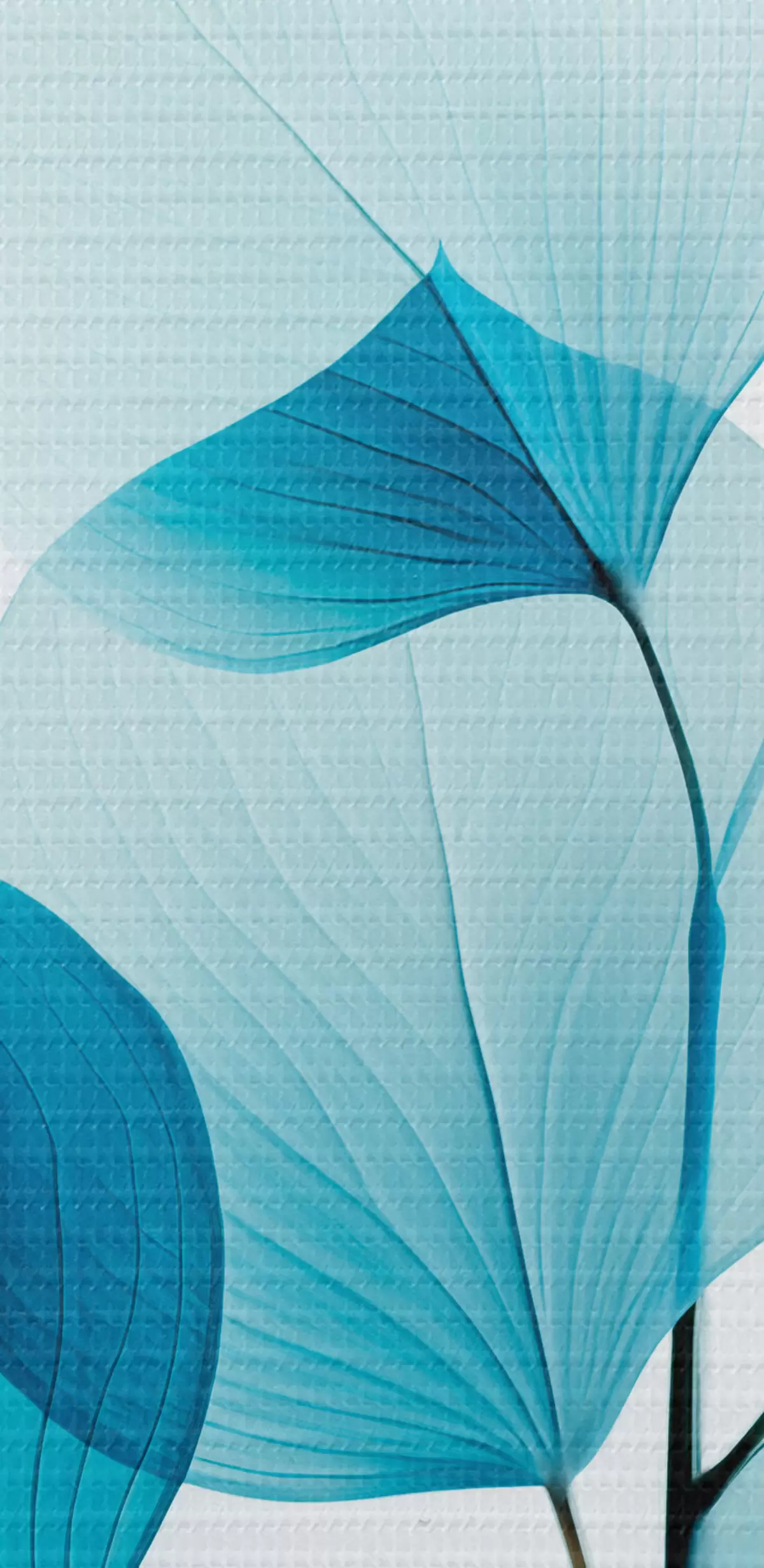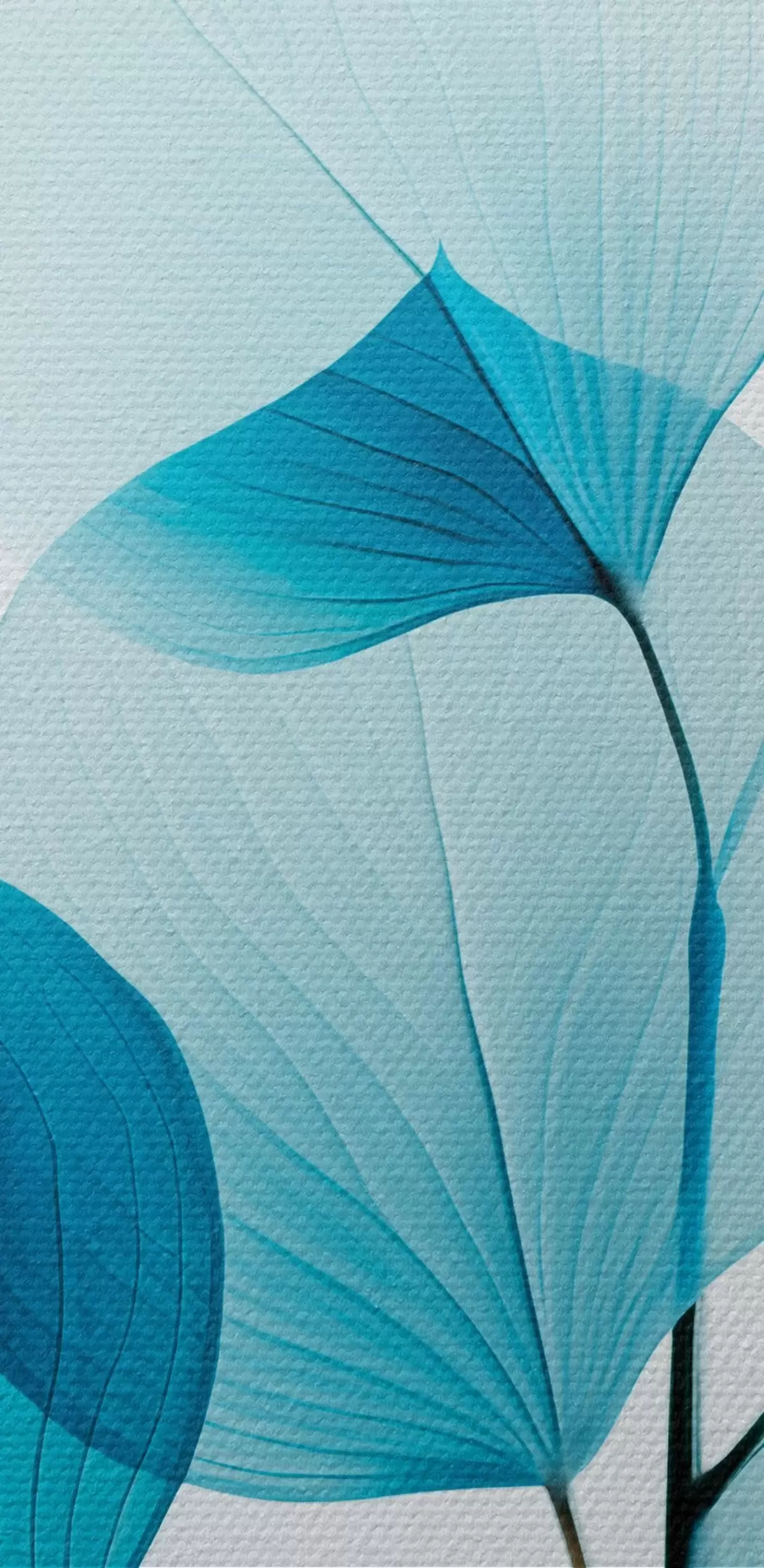 Pictură pe pânză Creangă cu frunze albastre translucide, vene delicate vizibile, compoziție ușoară și calmă, estetică minimalistă Nr m00522