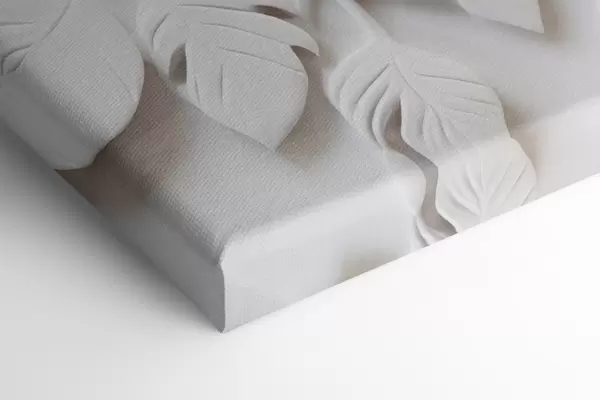 Pictură pe pânză Decorative minimaliste flori albe cu frunze, imitație de relief, fundal alb Nr m00524