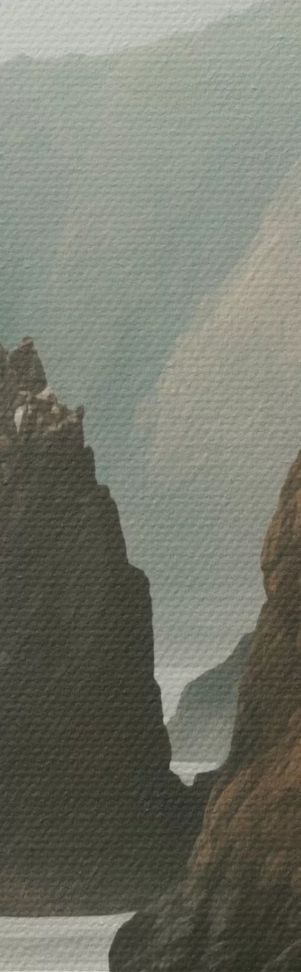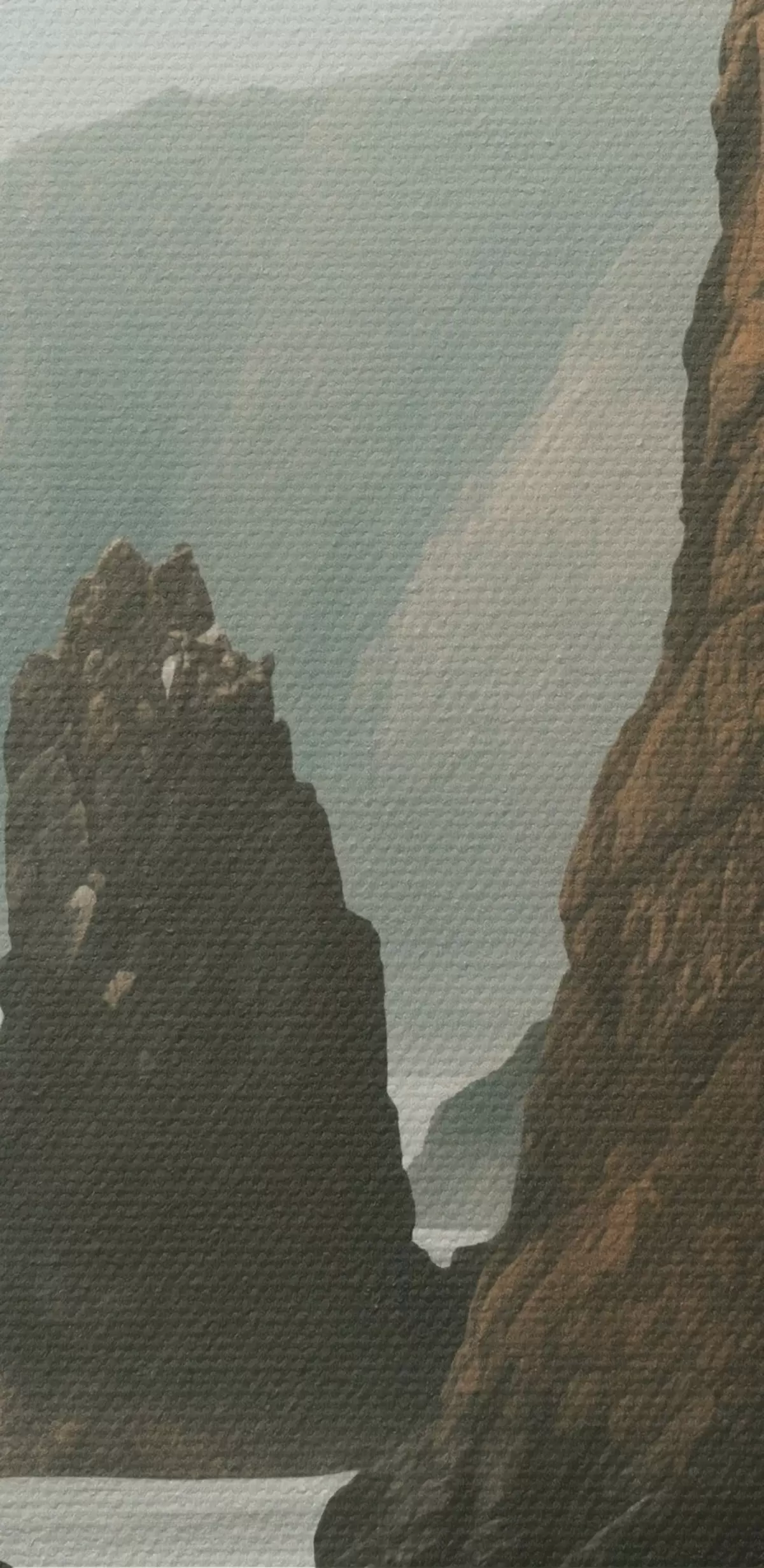 Pictură pe pânză Stânci stâncoase și coastă de mare, valuri care se sparg pe țărm, peisaj cu o atmosferă moody, tonuri de pământ Nr m00531