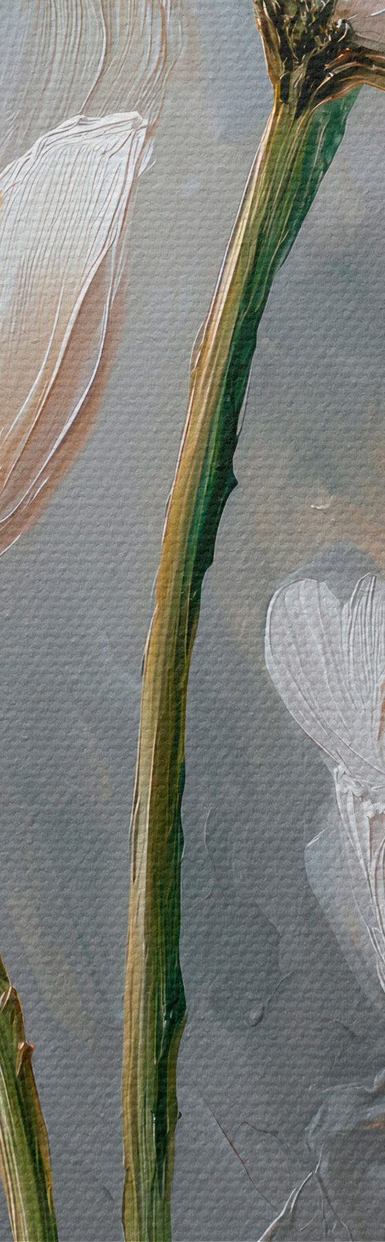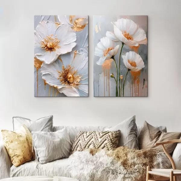 Pictură pe pânză Pictură volumetrică de flori albe cu accente galbene pe un fundal gri Nr m00568