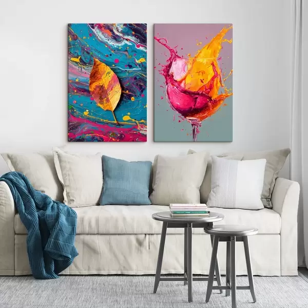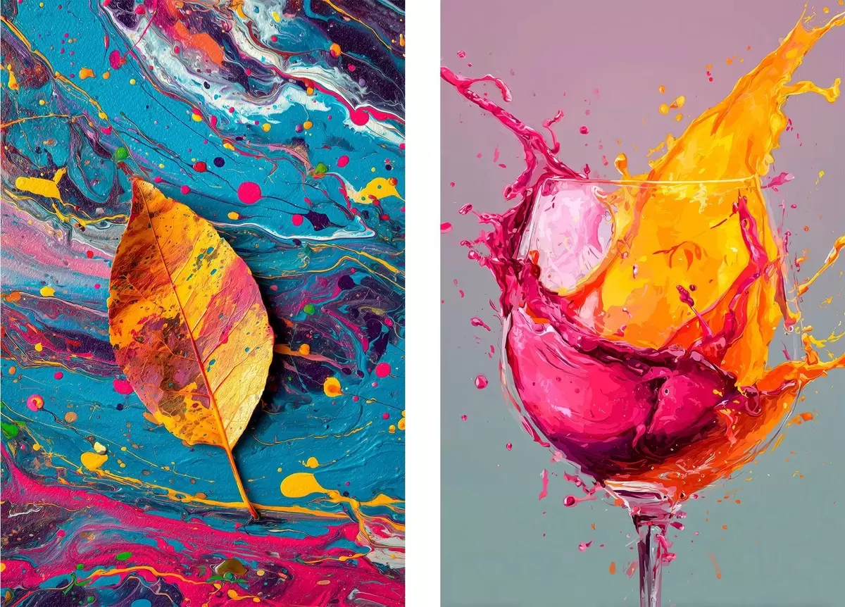 Pictură pe pânză Abstracție expresivă cu elemente din natură și băuturi Nr m00570