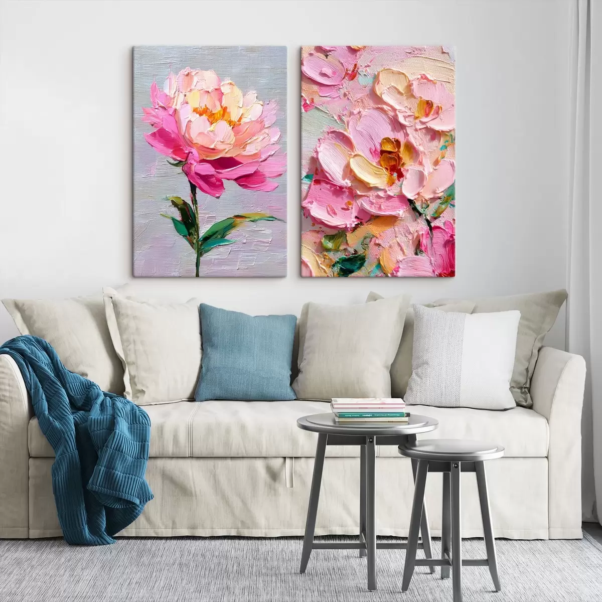 Pictură pe pânză Artă modernă cu flori roz în tehnică volumetrică Nr m00572