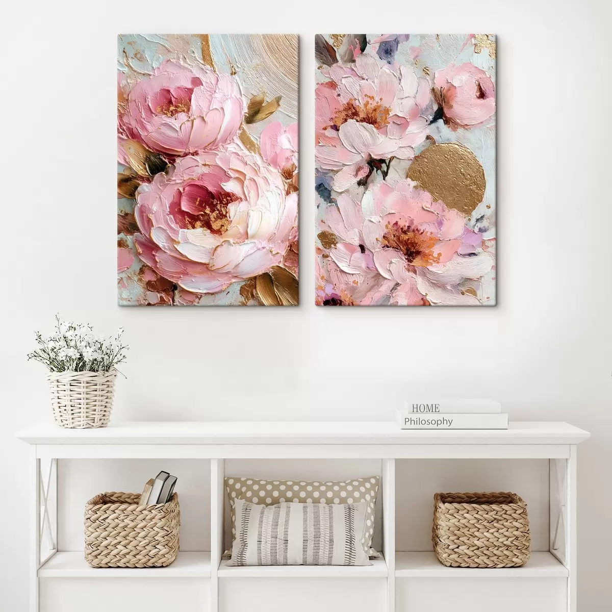 Pictură pe pânză Pictură volumetrică impasto cu bujori roz și detalii texturate Nr m00573