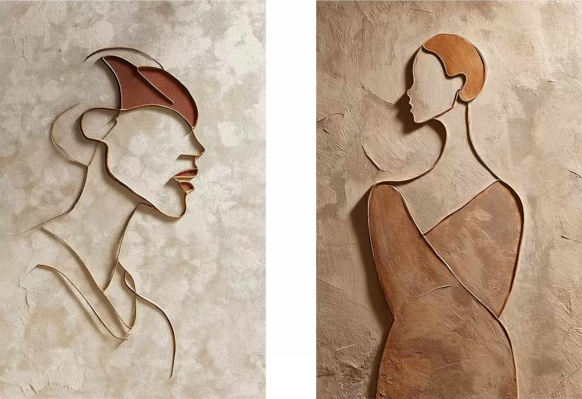 Pictură pe pânză Relief siluete de oameni într-un stil minimalist Nr m00596