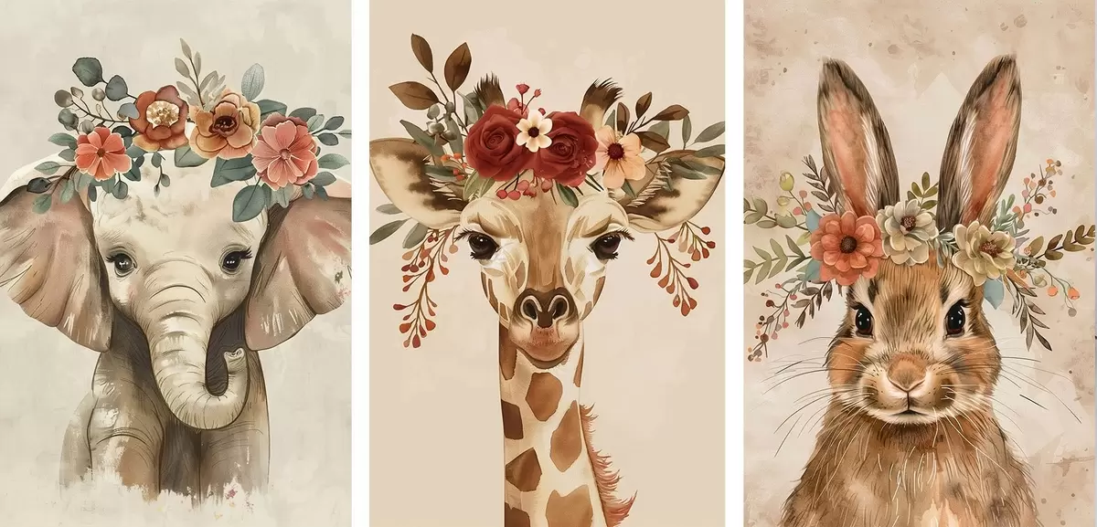 Pictură pe pânză Animale drăguțe în stil acuarelă Nr m00614