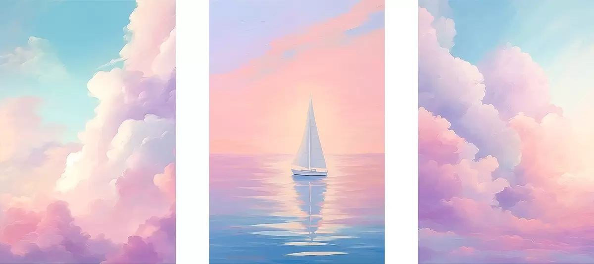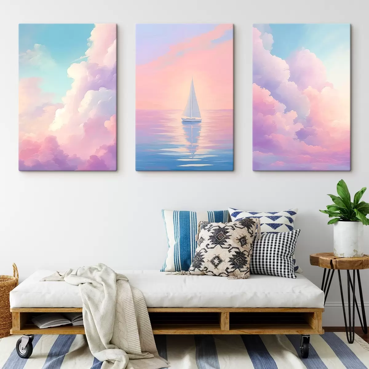 Pictură pe pânză Barcă cu vele pe mare pe un fundal de nori Nr m00619