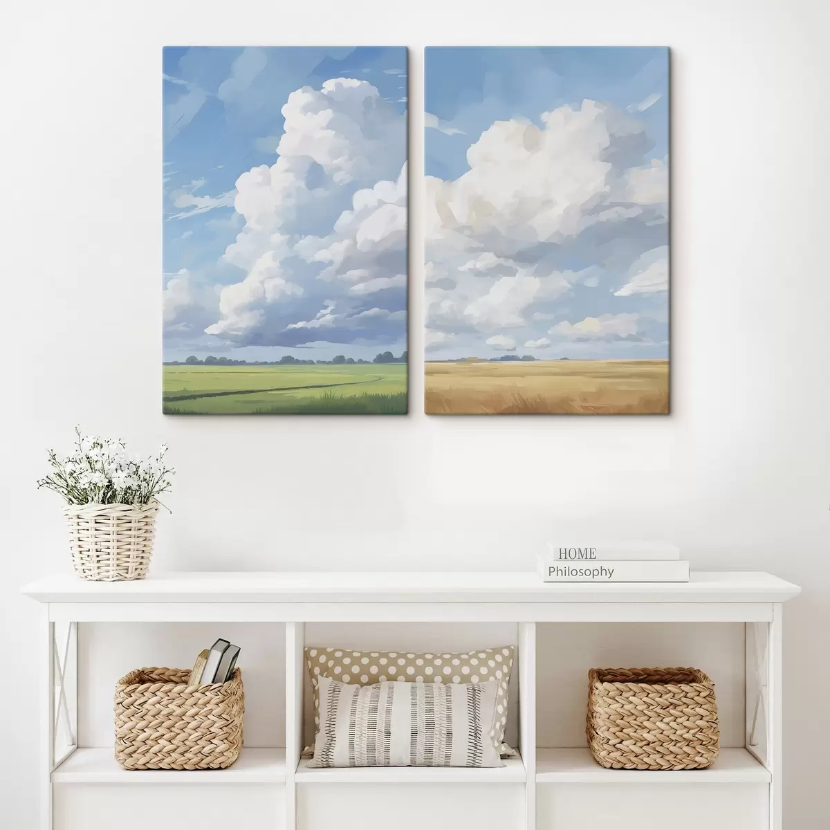 Pictură pe pânză Câmp împotriva cerului cu nori uriași Nr m00624