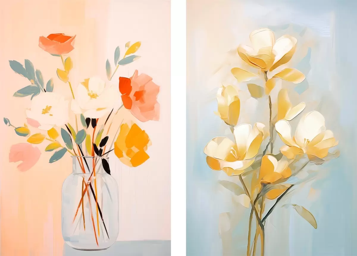 Pictură pe pânză Flori într-o vază: desen în stilul picturii în ulei Nr m00636