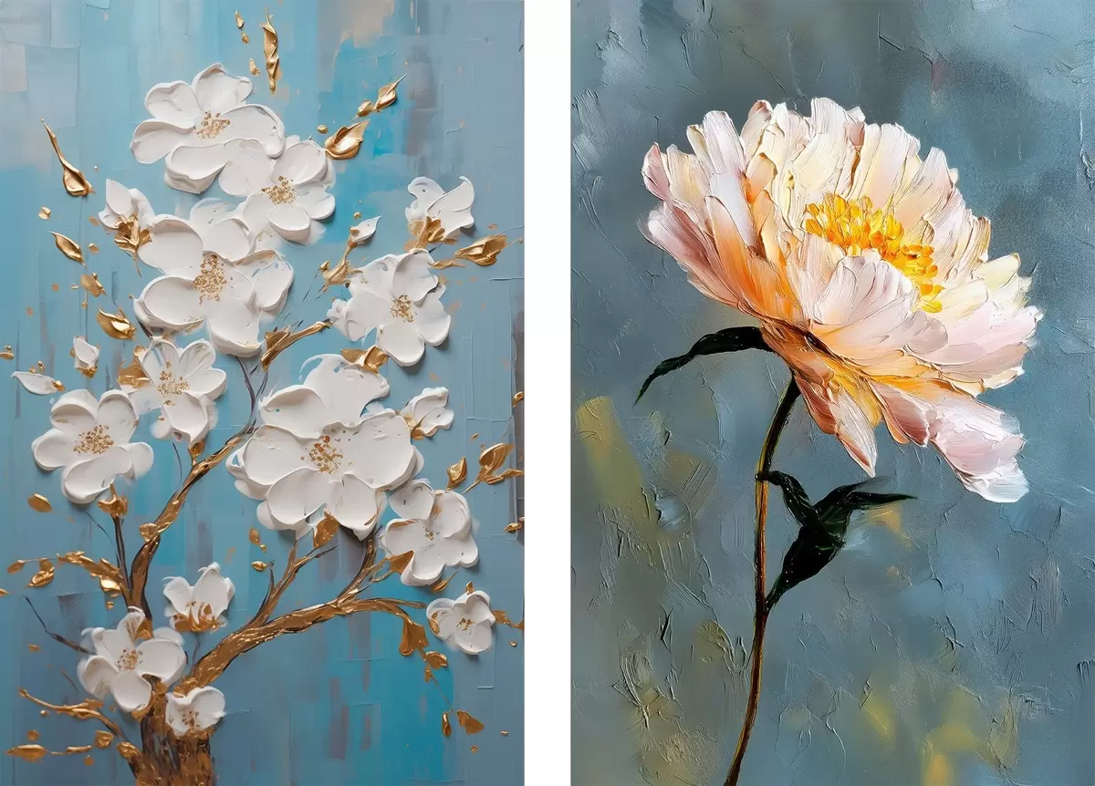 Pictură pe pânză Ramură înflorită și bujor: compoziție în relief Nr m00637