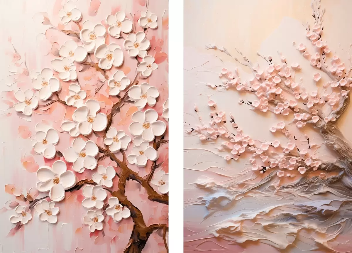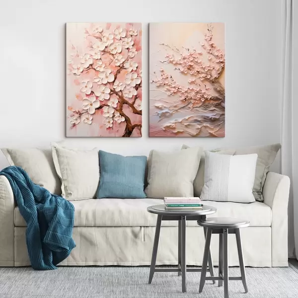 Pictură pe pânză Sakura înfloritoare: compoziție în stil impasto Nr m00638