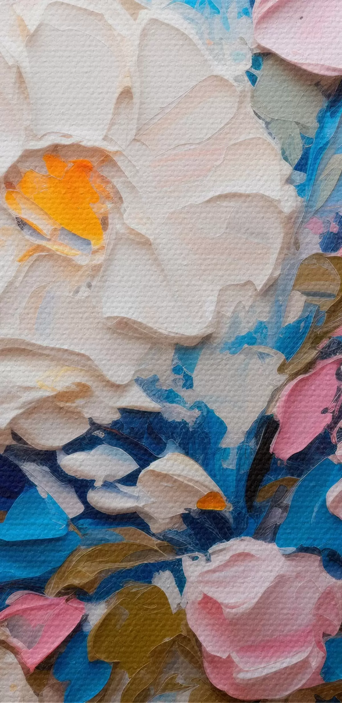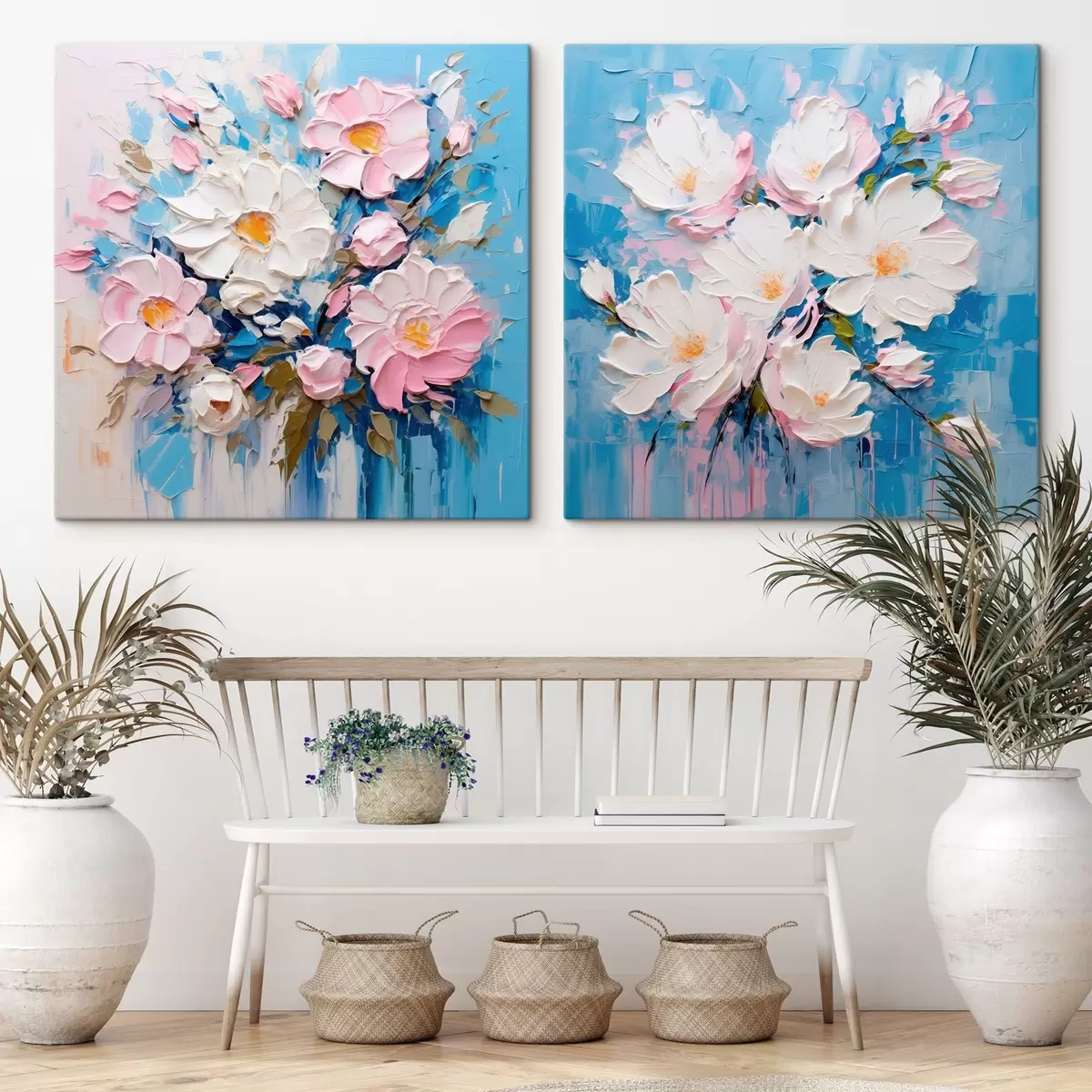 Pictură pe pânză Flori abstracte: compoziție decorativă în tonuri de roz și albastru Nr m00643