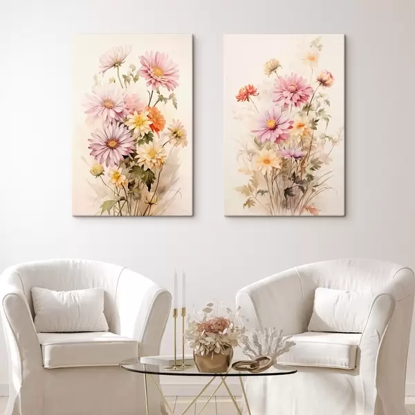 Pictură pe pânză Un buchet de flori colorate, stil acuarelă moale, pe un fundal ușor, ilustrație botanică Nr m00649