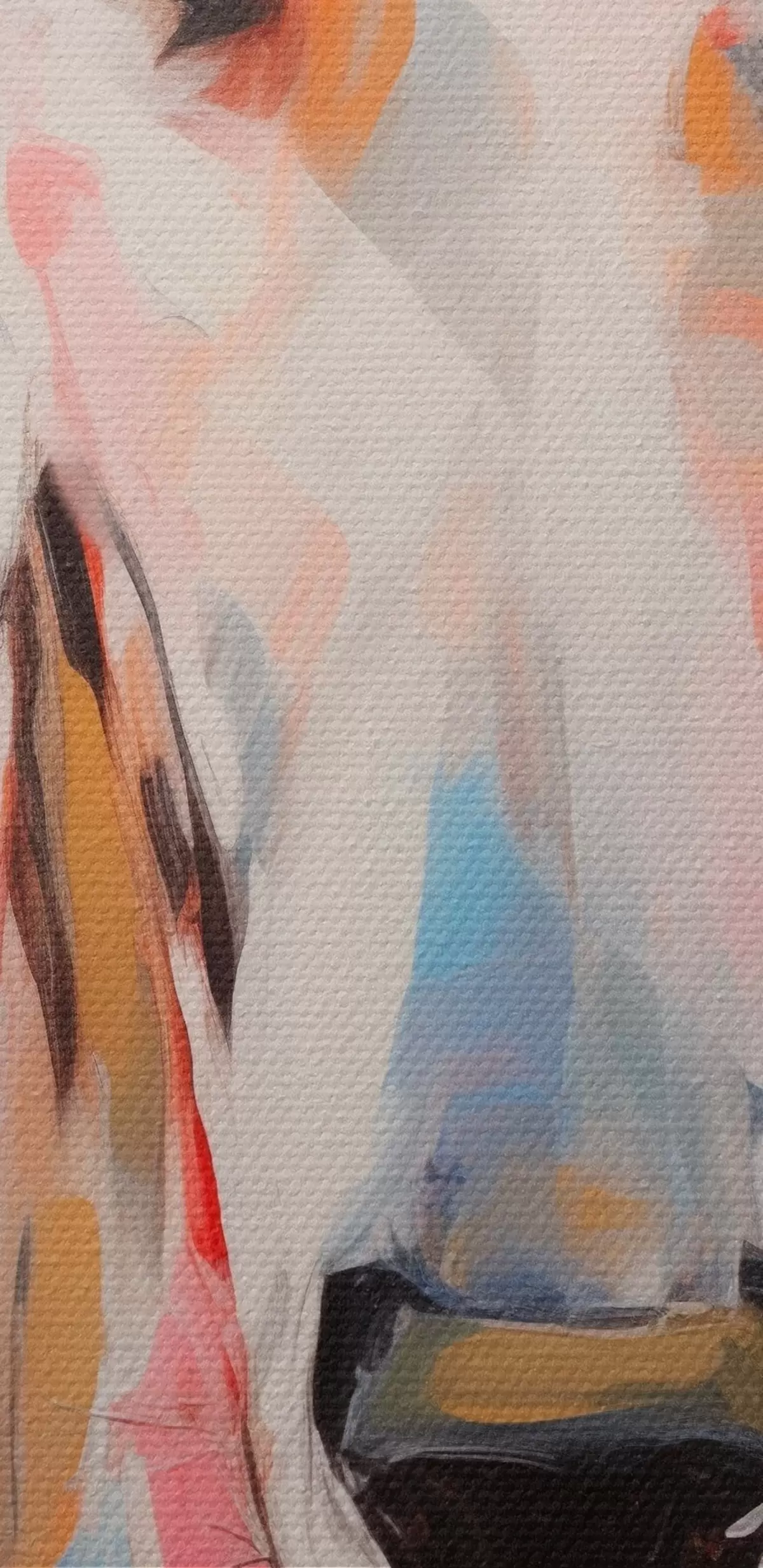 Pictură pe pânză Un câine greyhound, pictat cu culori vibrante precum portocaliu, roz și albastru, pe un fundal alb simplu Nr m00652
