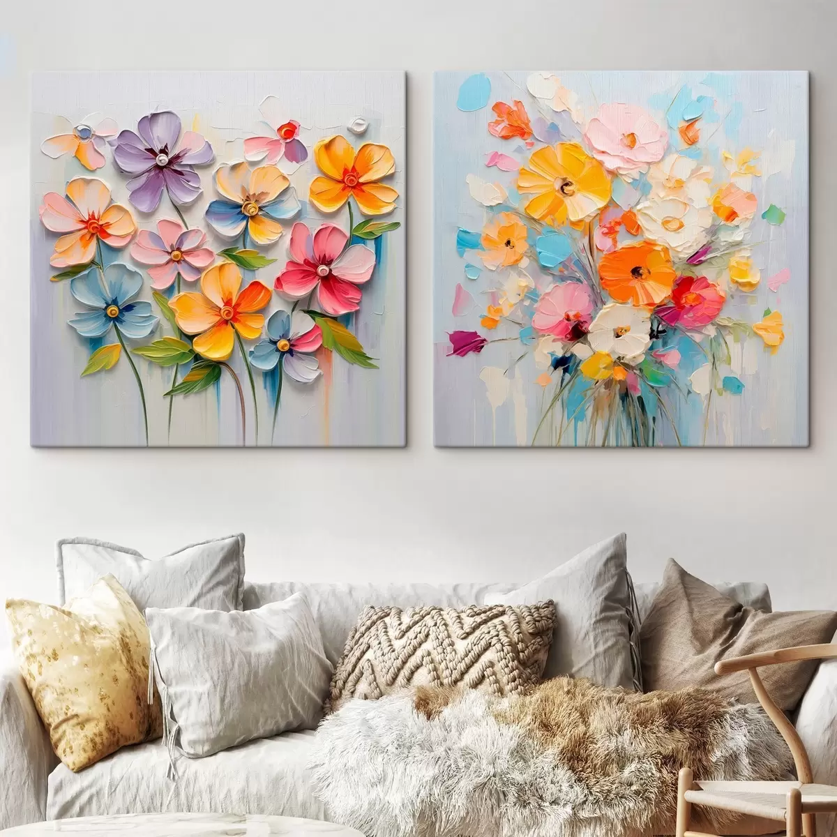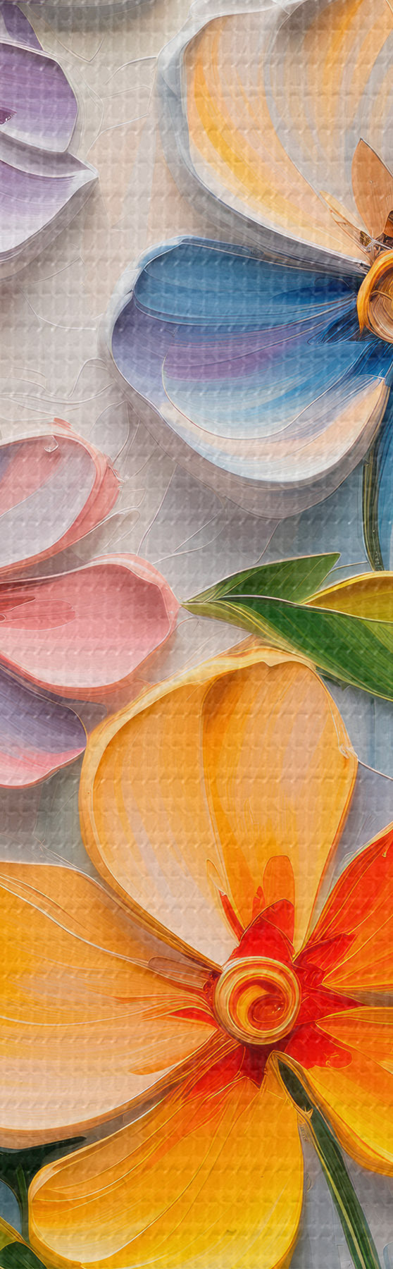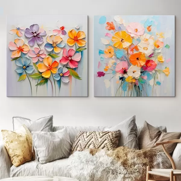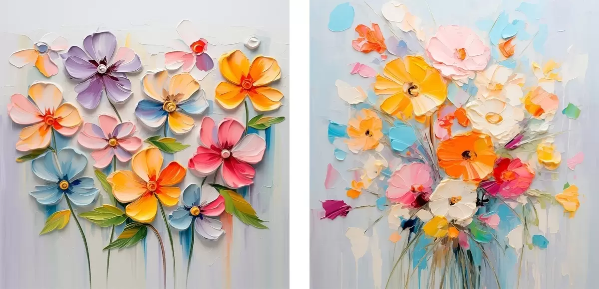 Pictură pe pânză Compoziții abstracte de flori strălucitoare realizate în tehnica impasto Nr m00662