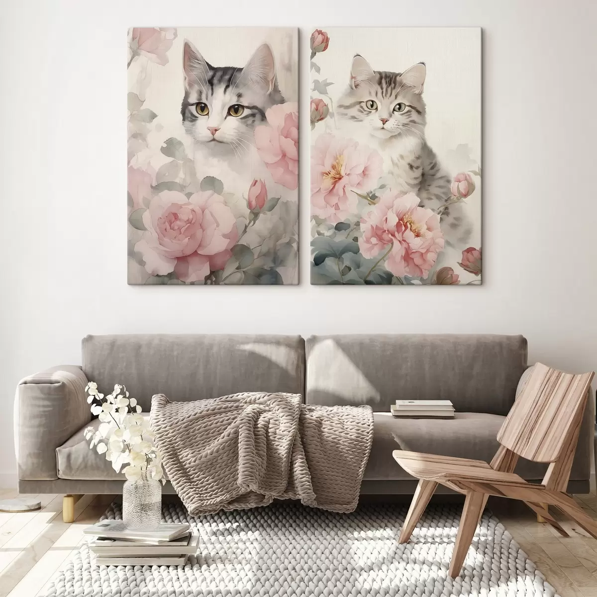 Pictură pe pânză Pisică printre flori Nr m00676