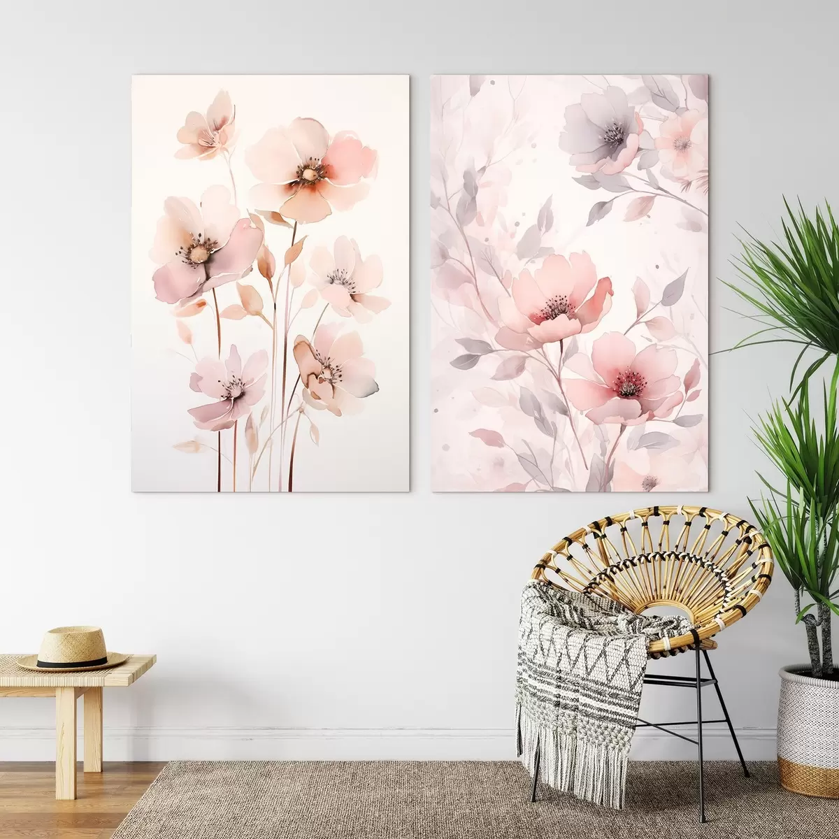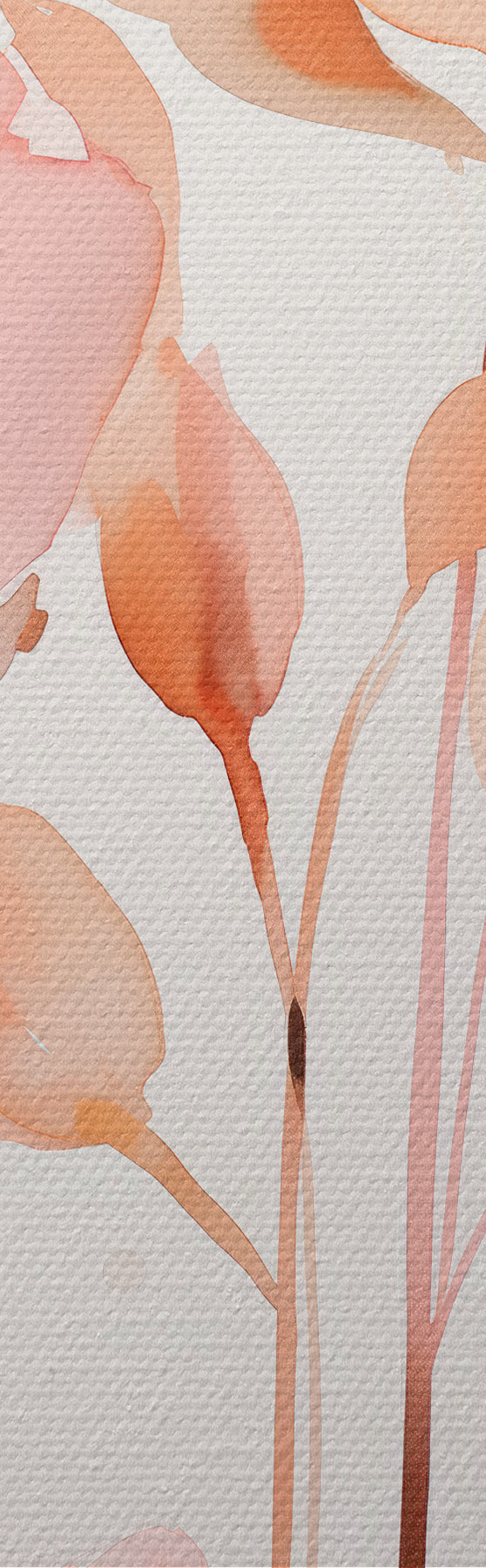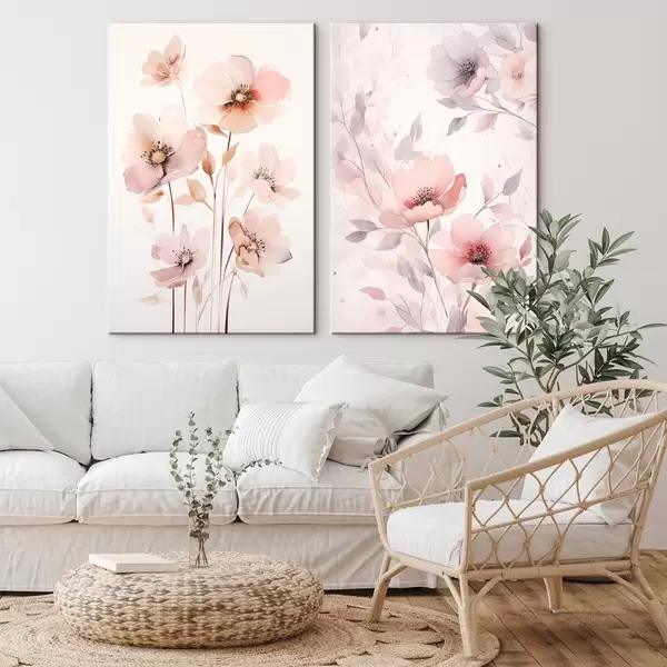 Pictură pe pânză Flori roz acuarelă pe tulpini subțiri Nr m00690