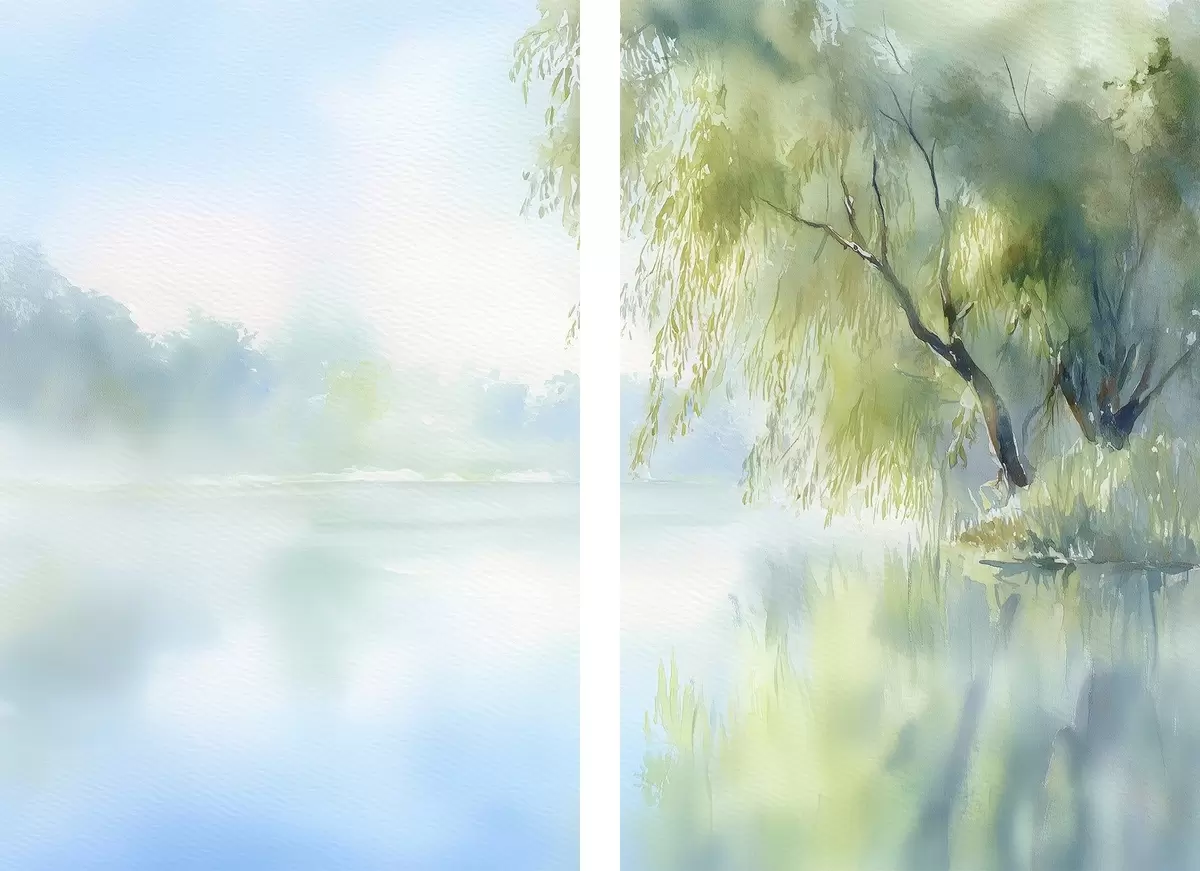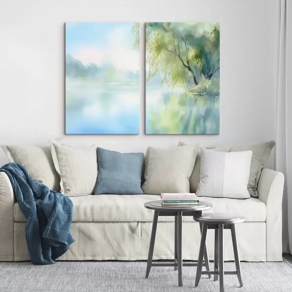 Pictură pe pânză salcie pe malul lacului în stil acuarelă Nr m00702