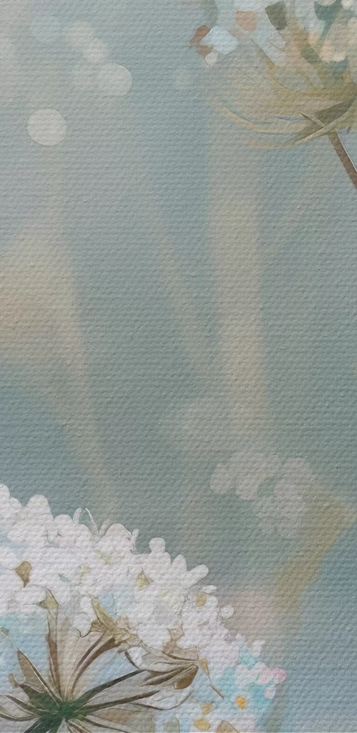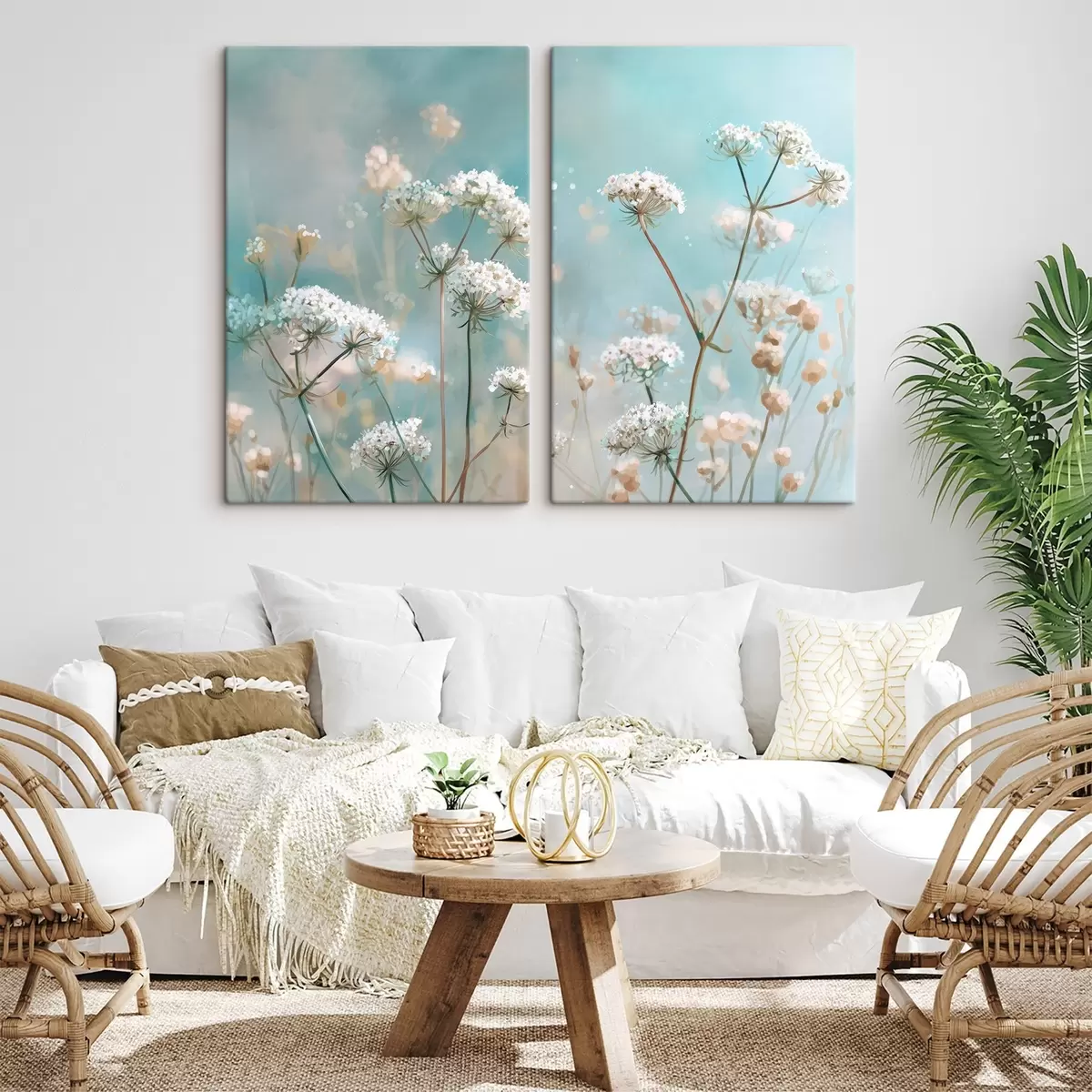 Pictură pe pânză Flori Queen Anne's Lace în stil acuarelă pe fundal albastru Nr m00705
