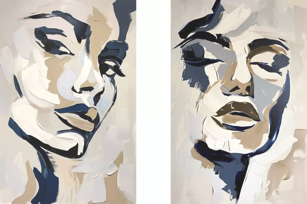 Pictură pe pânză Fețe abstracte de femei cu tușe de pensulă imitate Nr m00713