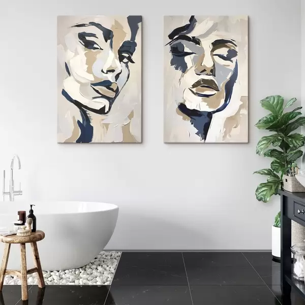 Pictură pe pânză Fețe abstracte de femei cu tușe de pensulă imitate Nr m00713