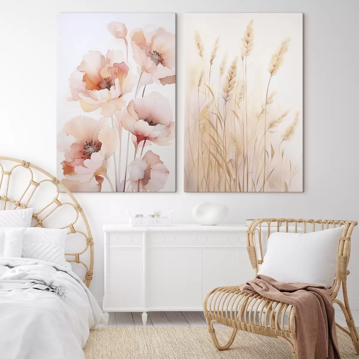 Pictură pe pânză Imitare de mac și spiculețe în acuarelă Nr m00723