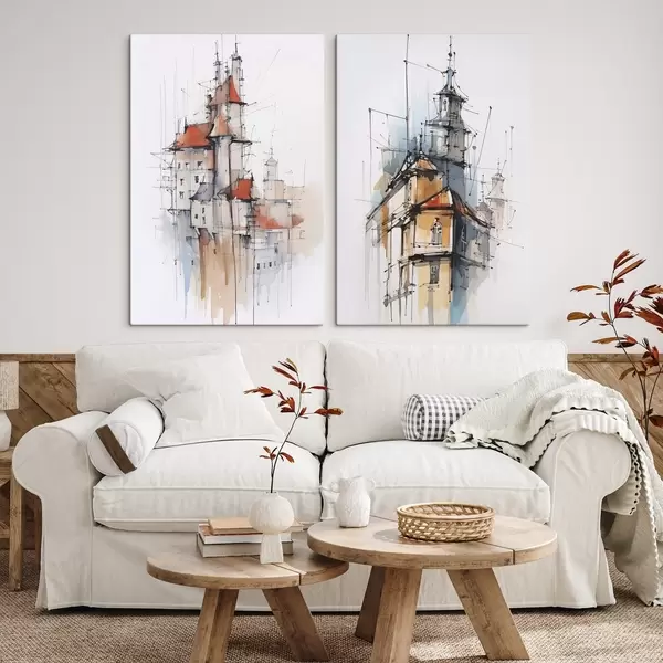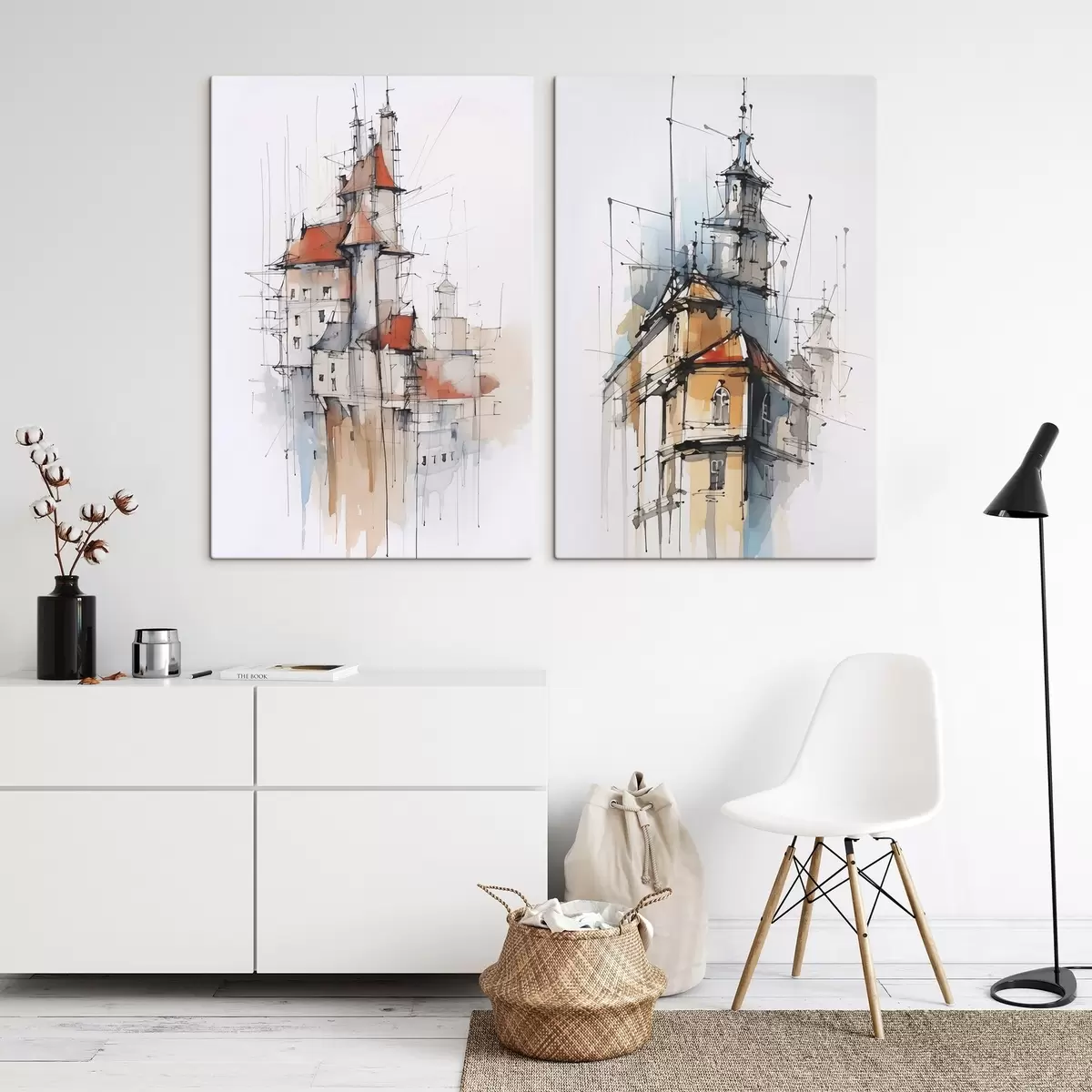 Pictură pe pânză Case schiță imitație și acuarelă Nr m00725