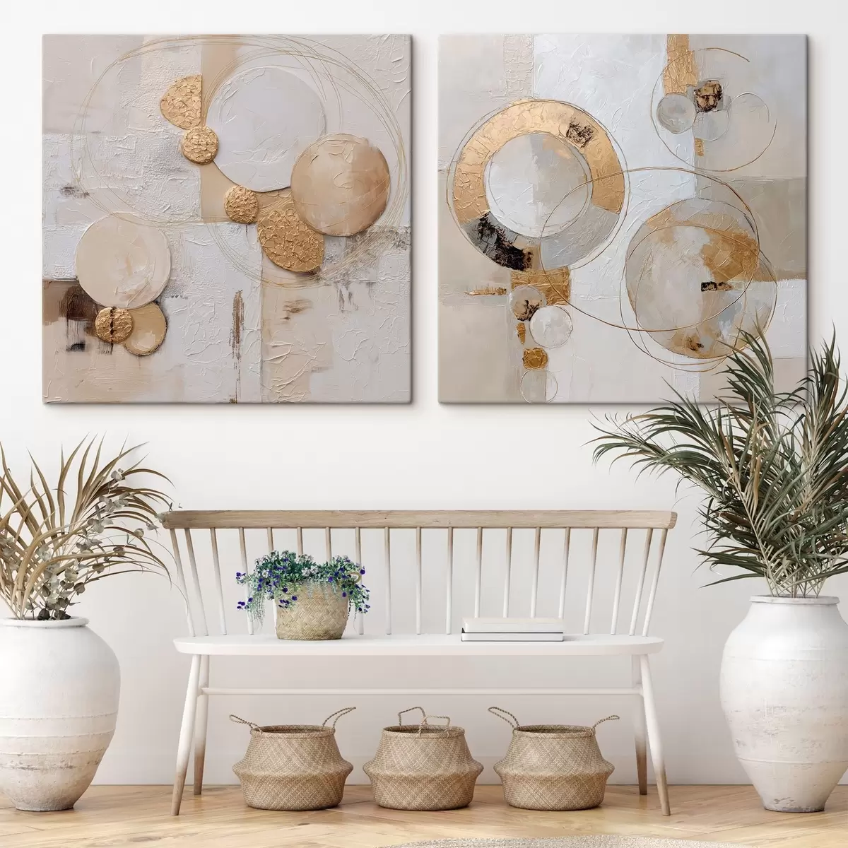 Pictură pe pânză Pictură texturată cu forme bej și albe Nr m00741