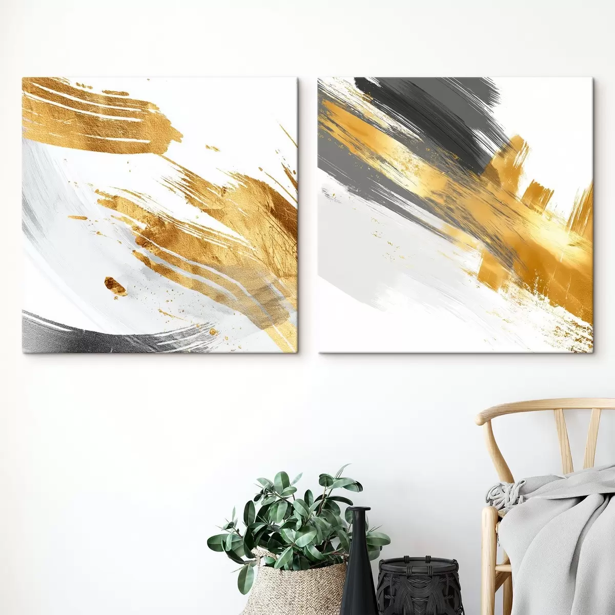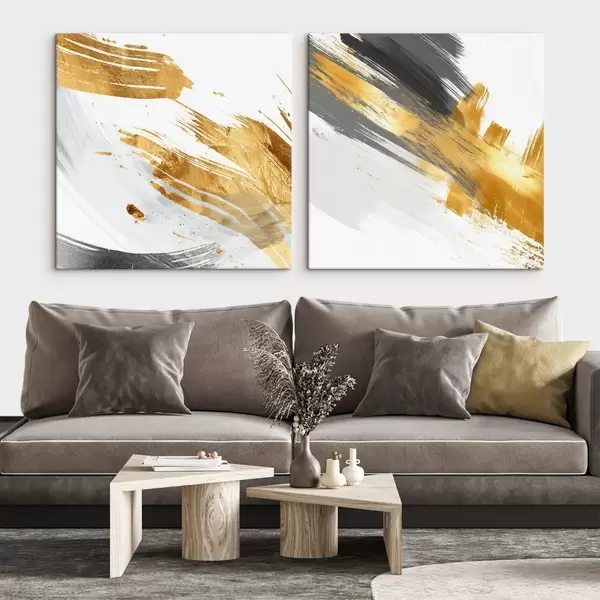 Pictură pe pânză Abstracție dinamică cu linii galbene și gri Nr m00748