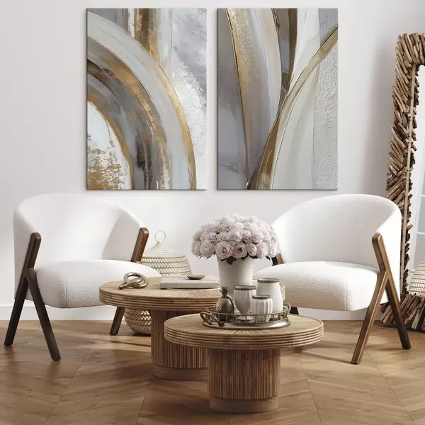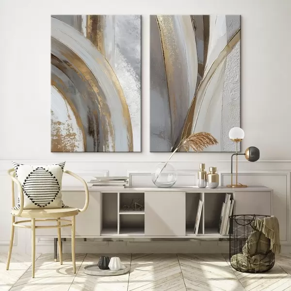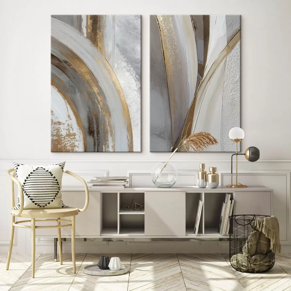 Pictură pe pânză Arce abstracte gri și galbene într-un stil modern Nr m00749