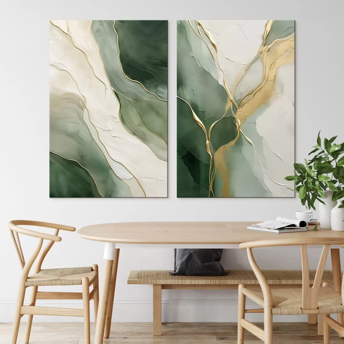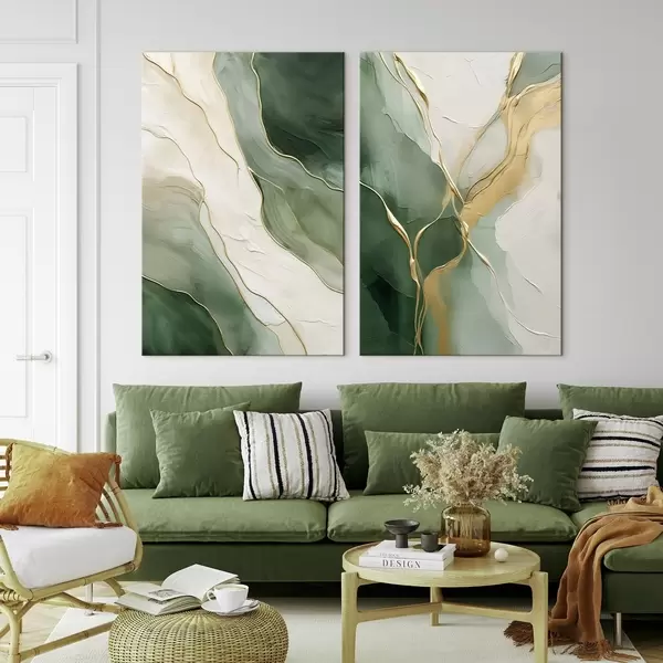 Pictură pe pânză Valuri smarald cu șiroaie galbene Nr m00764