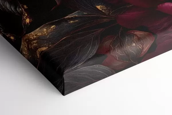Pictură pe pânză Bujori burgund și o siluetă cu cap de lună pe fond negru Nr m00765