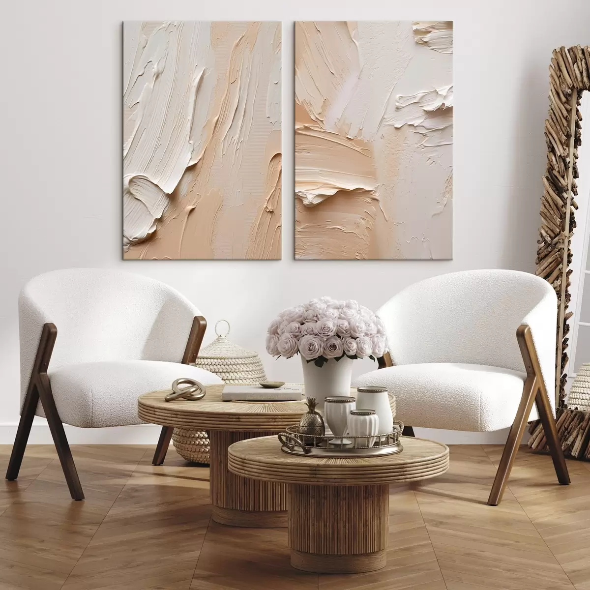 Pictură pe pânză Tușe impasto cu nisip cremos Nr m00767