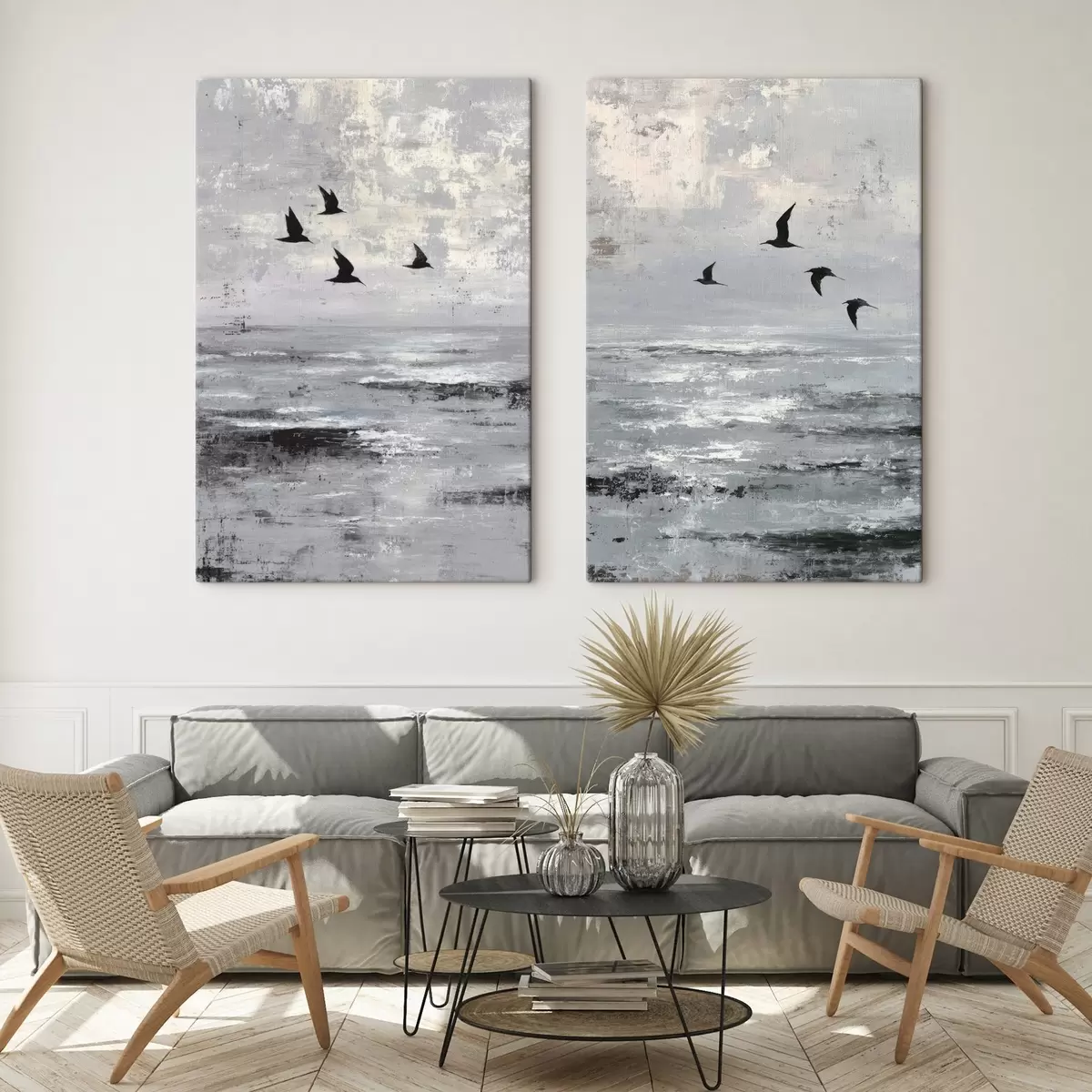 Pictură pe pânză Peisaj abstract cu păsări Nr m00778