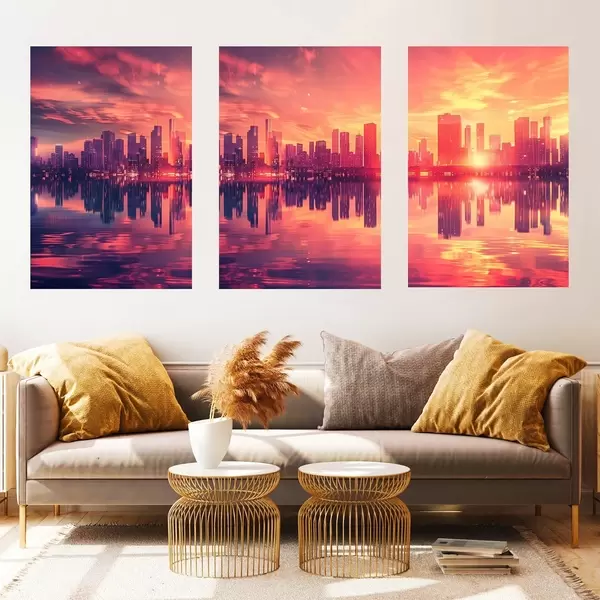 Pictură pe pânză Apus romantic cu un oraș modern în fundal Nr m00784