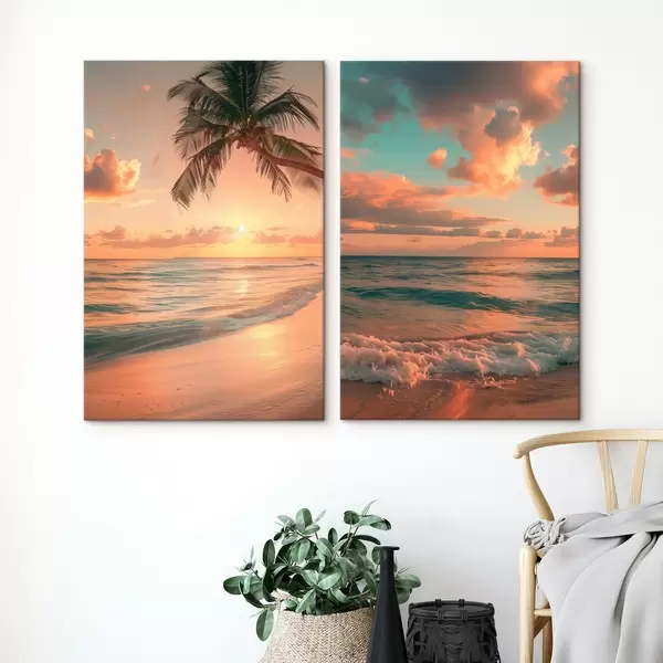 Pictură pe pânză Apus de soare pe malul mării, cu vedere la valuri Nr m00787