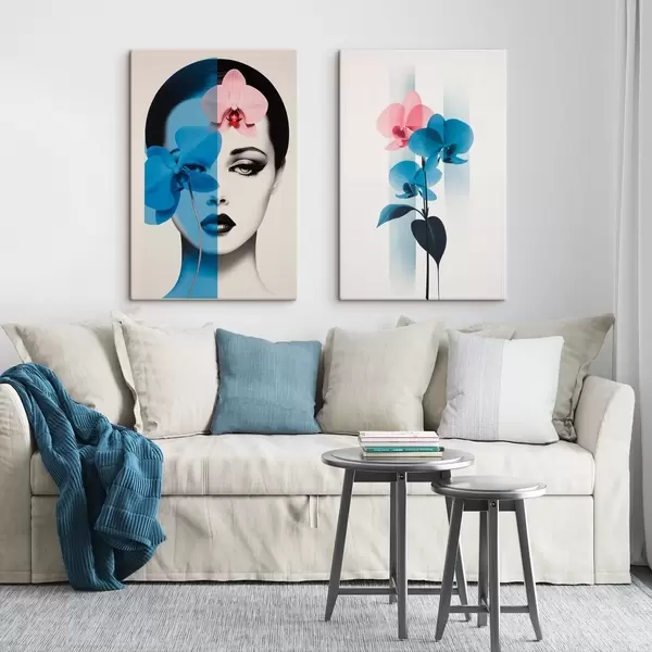 Pictură pe pânză Portret abstract al unei femei cu orhidee Nr m00818