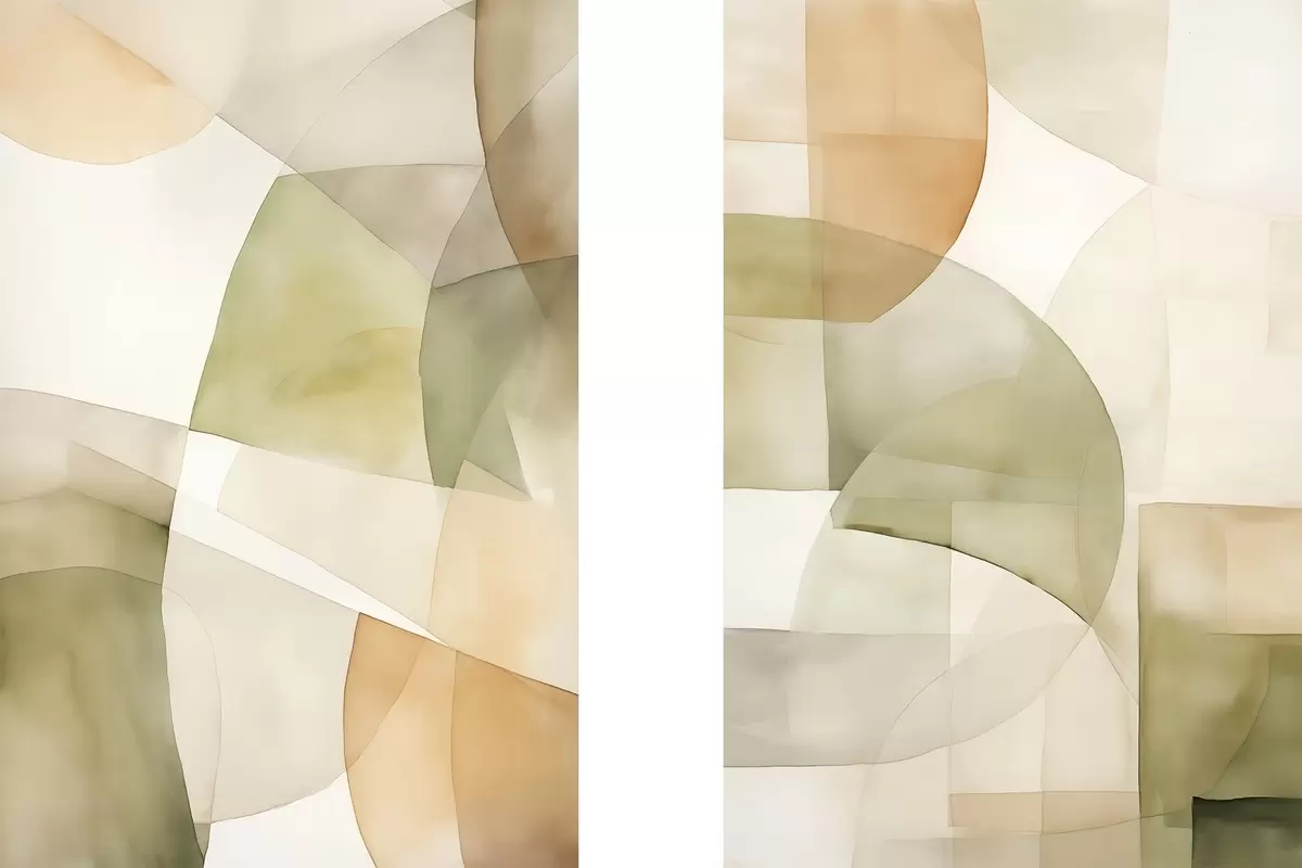 Tablouri Forme geometrice abstracte texturate în acuarelă, în nuanțe de verde, maro și bej m00820