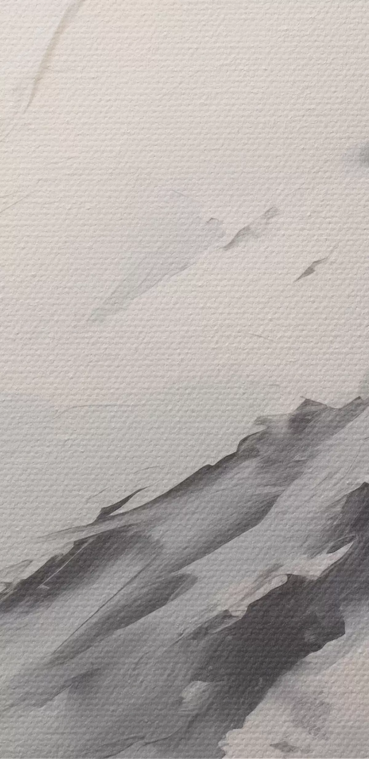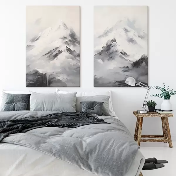 Pictură pe pânză Vârfuri de munte înzăpezite cu umbre cenușii, cer cenușiu, pensule, texturat, minimalist Nr m00822