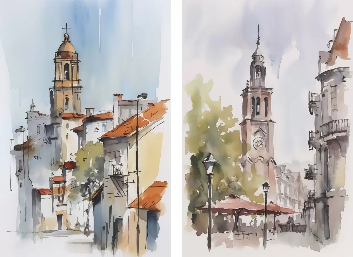 Pictură pe pânză Acuarelă imitație peisaj urban Nr m00832