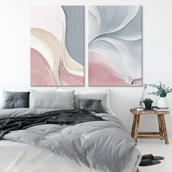 Pictură pe pânză Valuri abstracte în tonuri de roz-bej-albastru Nr m00874