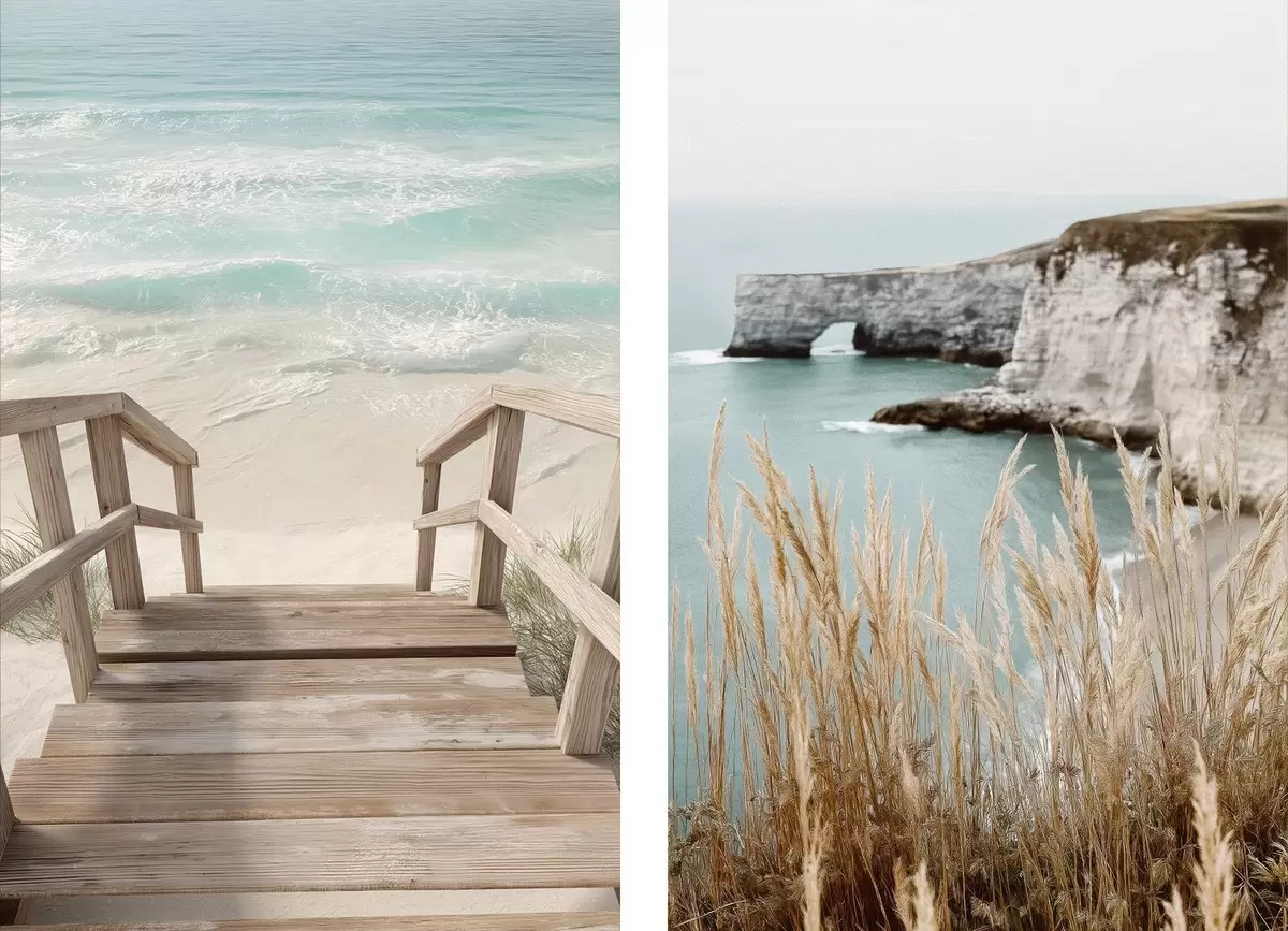 Pictură pe pânză Stânci de coastă și iarbă uscată lângă marea turcoaz Nr m00875