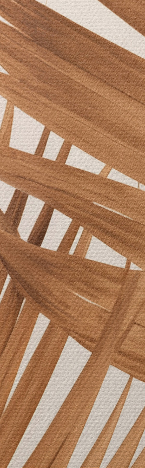 Pictură pe pânză Frunze de palmier în tonuri maronii, fundal neutru, stil minimalist, iluminare naturală, atmosferă tropicală Nr m00880