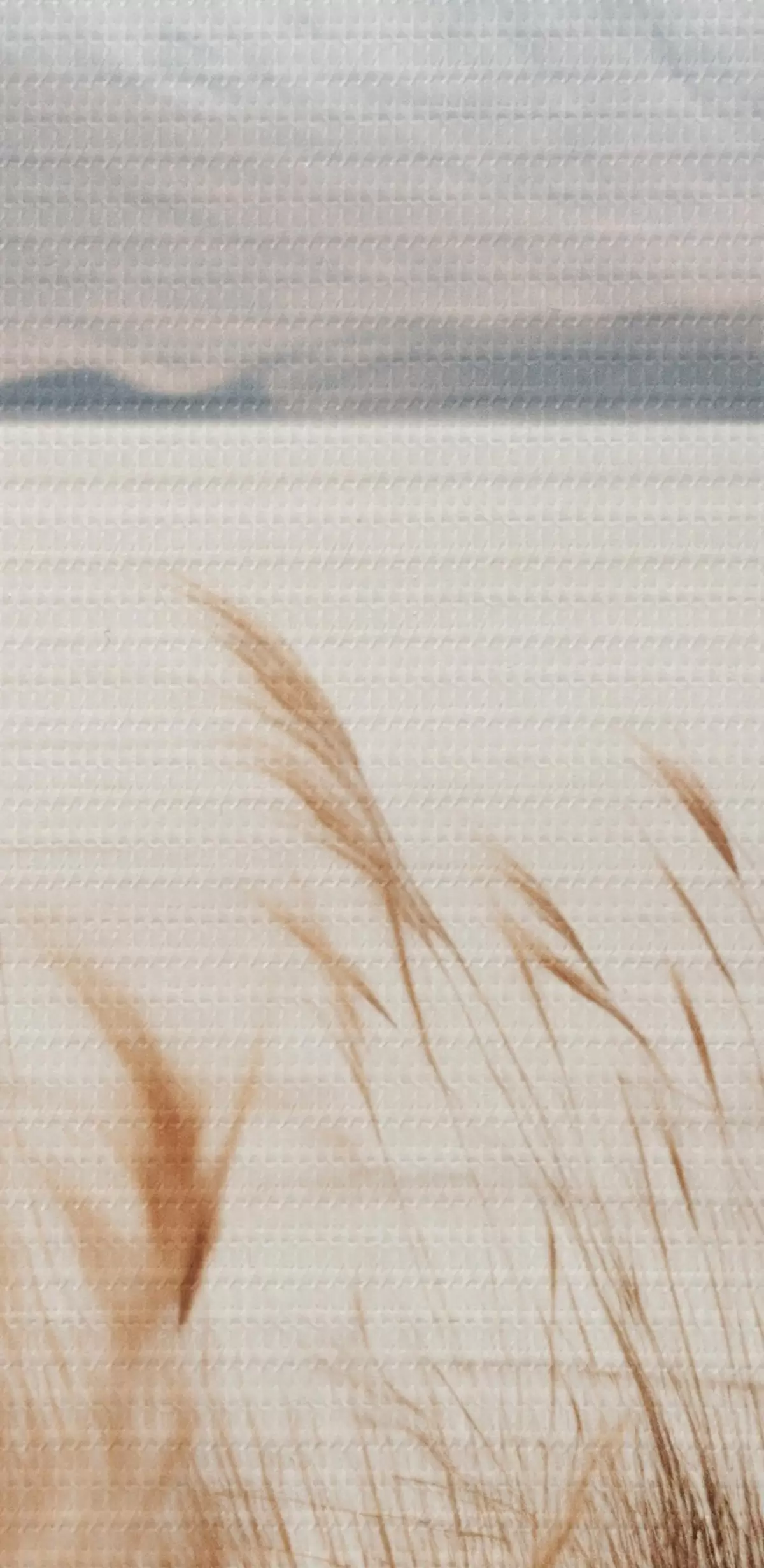 Pictură pe pânză Iarbă de pampas cu un lac și munți în fundal, iluminare difuză, culori discrete, stil naturalist Nr m00884