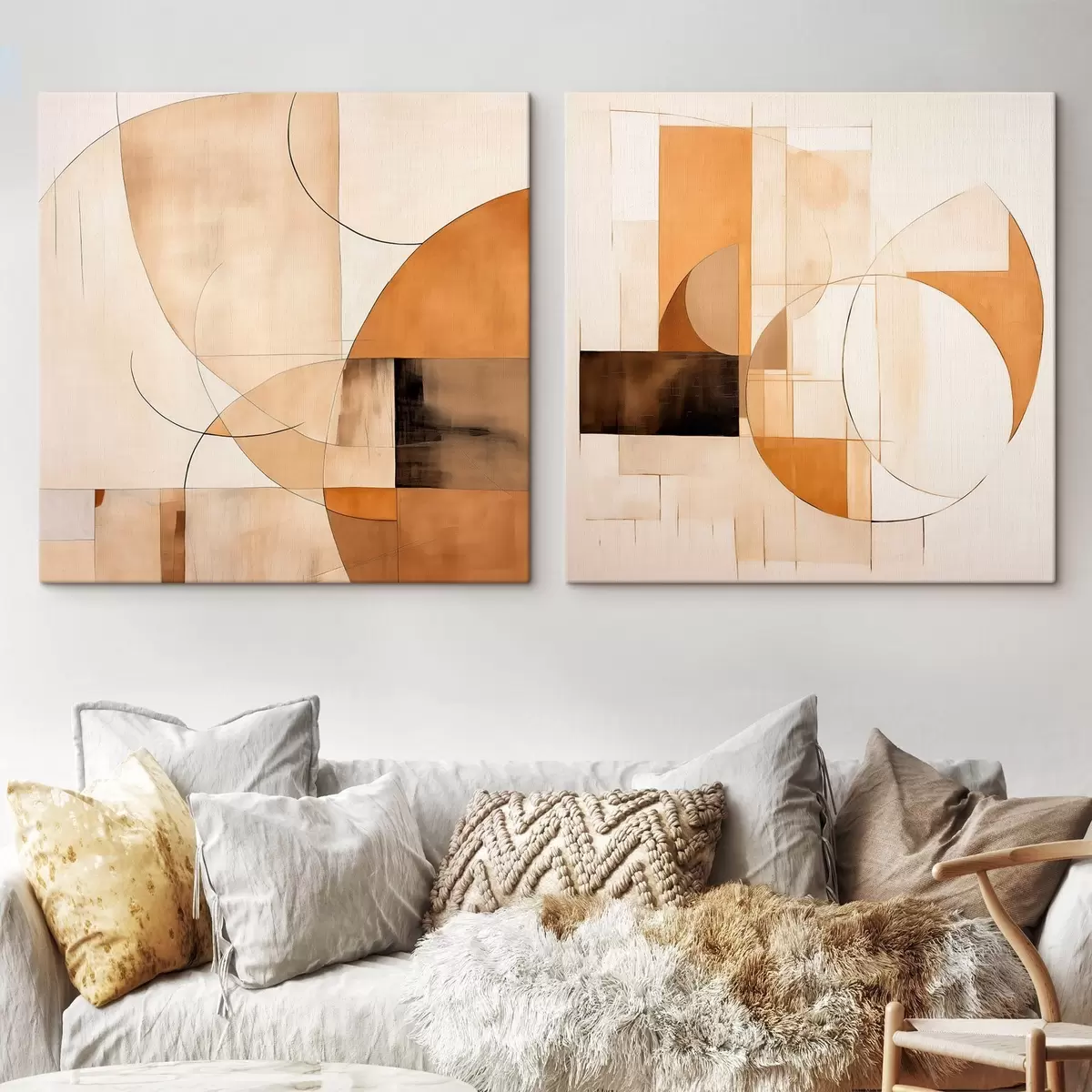 Pictură pe pânză Abstracție modernă cu cercuri și linii în culori de cafea cu lapte Nr m00898