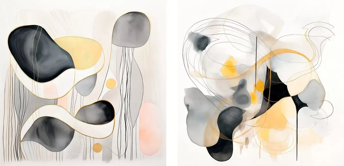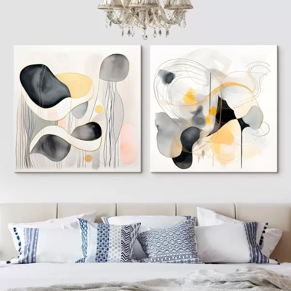 Pictură pe pânză Monocromatic și accent galben în stil abstract Nr m00905