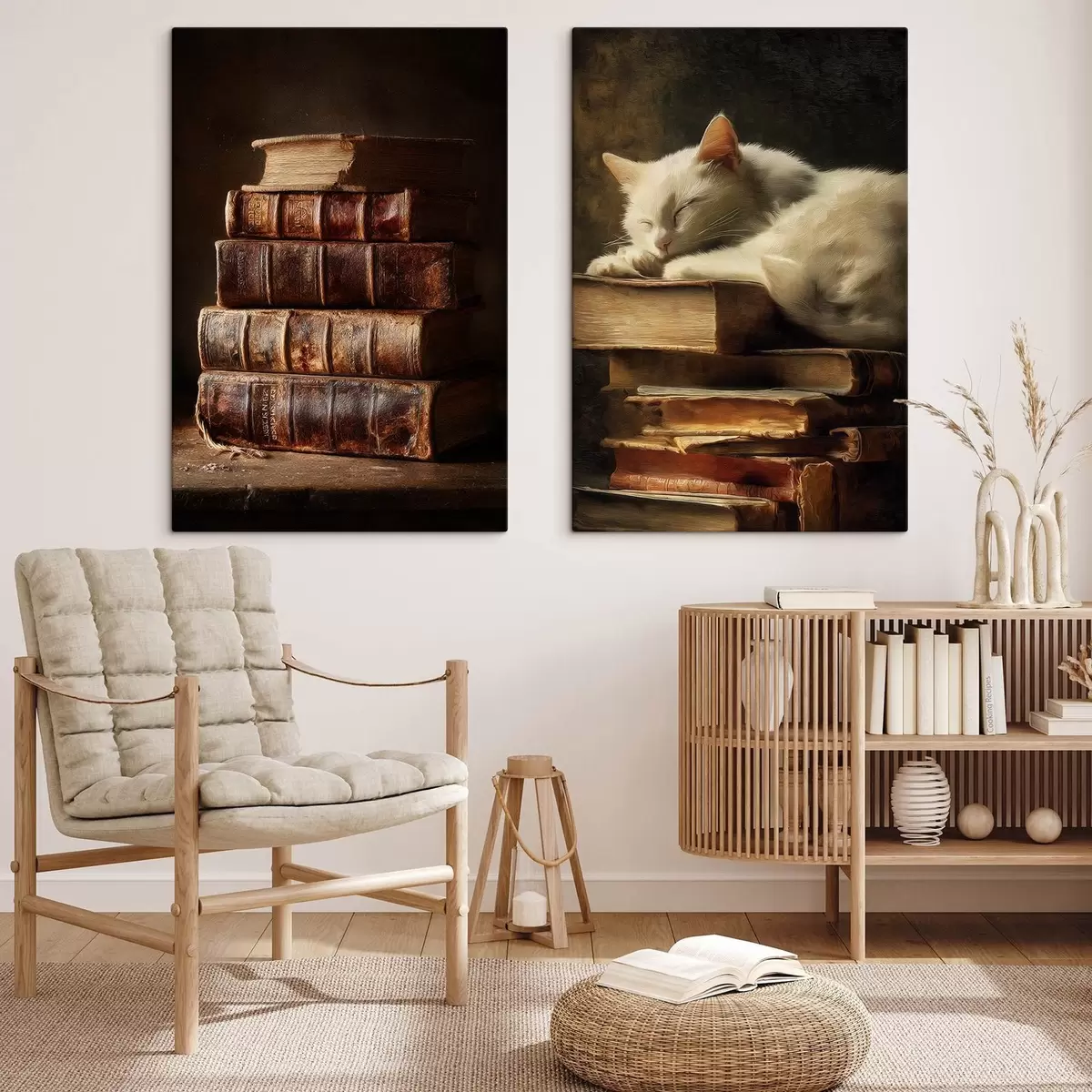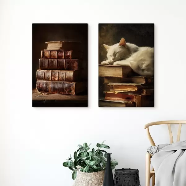 Pictură pe pânză Pisica pe cărți Nr m00918