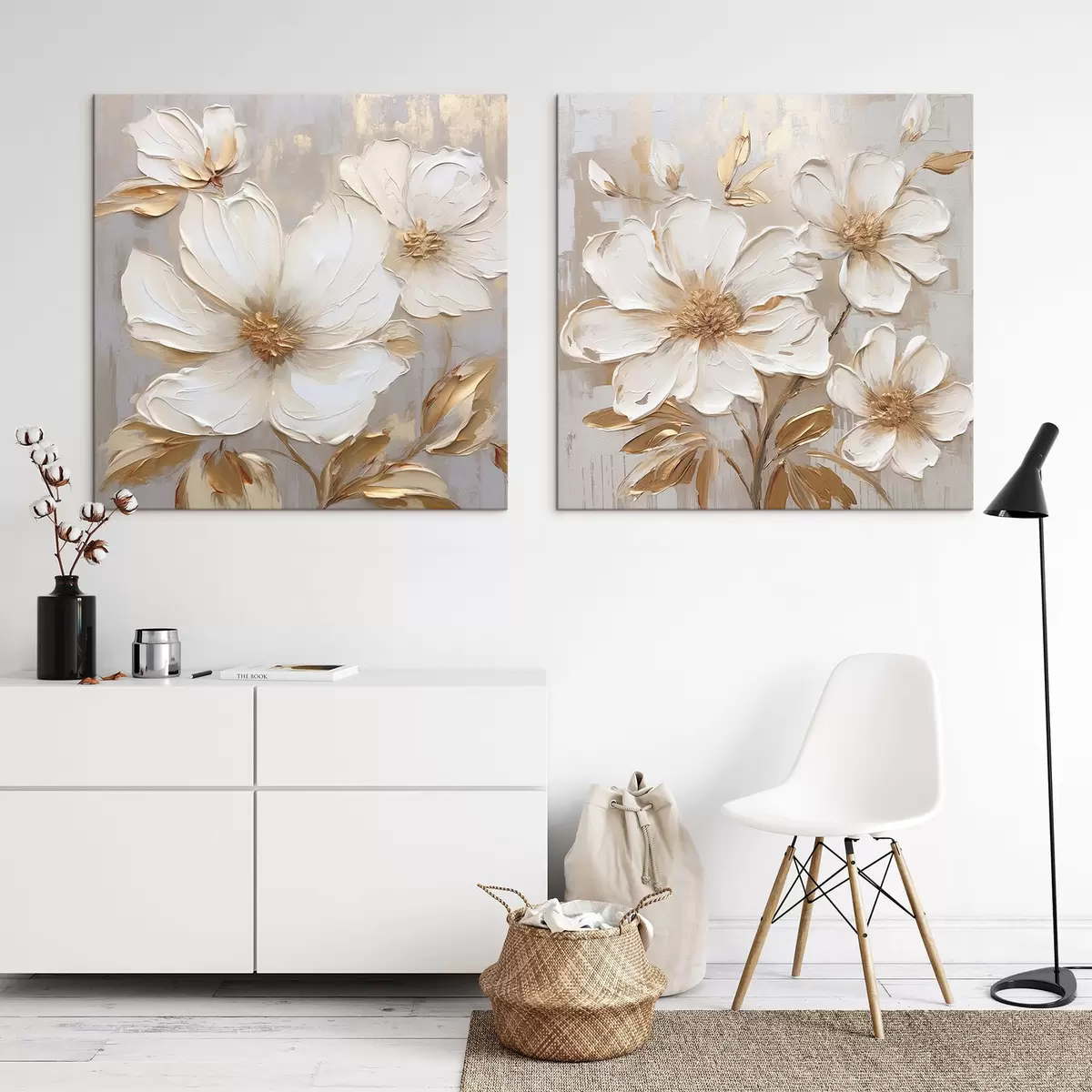Pictură pe pânză Diptic cu flori mari în culori calde și luminoase Nr m00927
